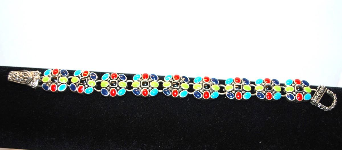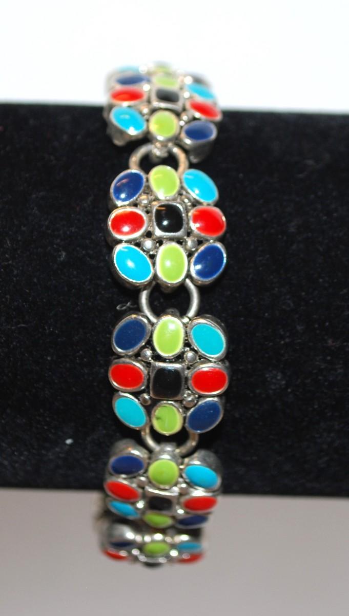 9 Clusters Each with 9 Multicolor Stones Bracelet with Magnetic Clasp 7½" Full Length