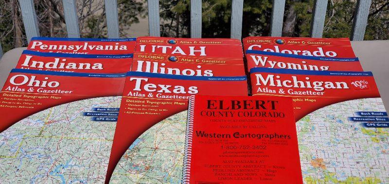 9 DeLorme State Road Atlas & Elbert County Plate Maps