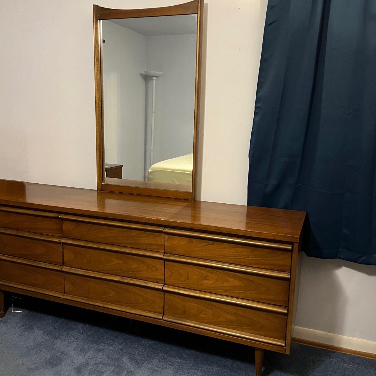 MCM Style Bassett Furniture Long Dresser w Mirror (Part of 5 Pc. Set)