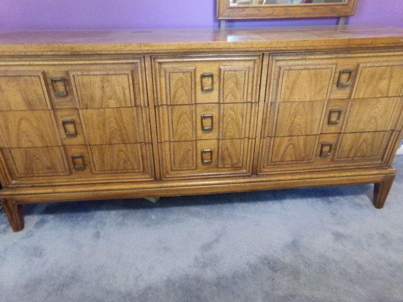 LOT 51  9 DRAWER WOODEN DRESSER WITH MIRROR