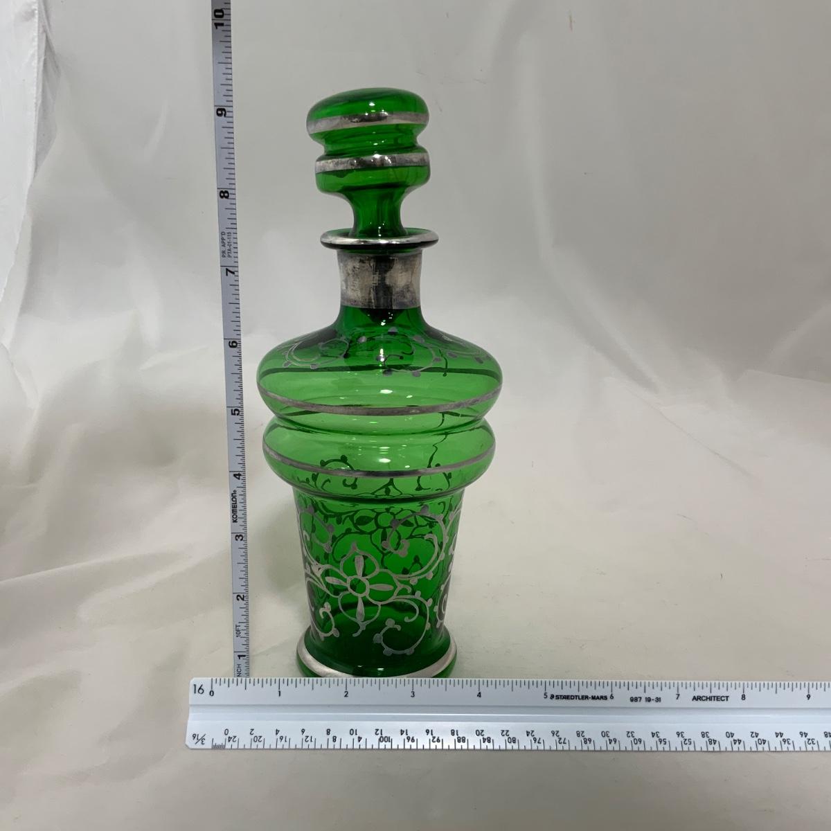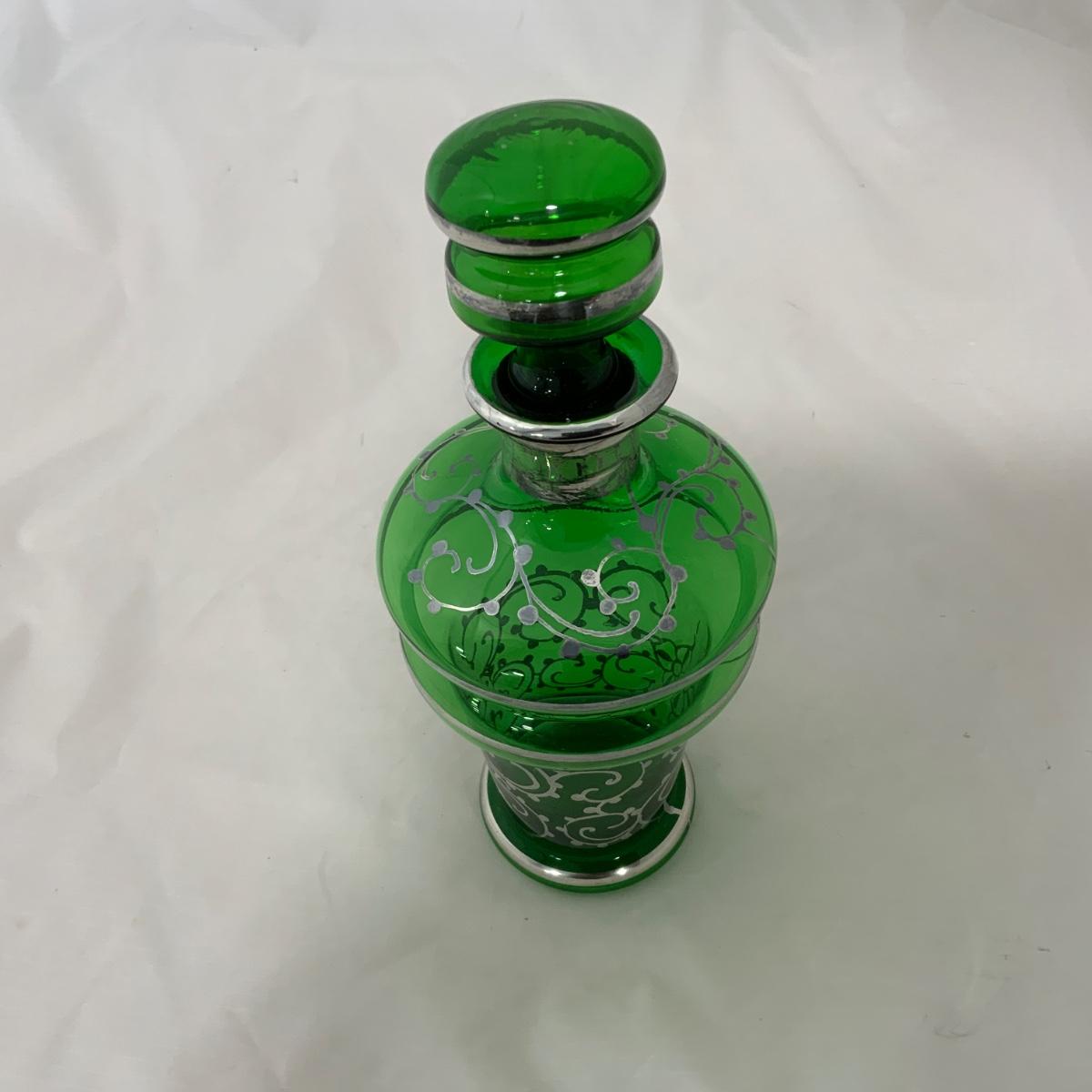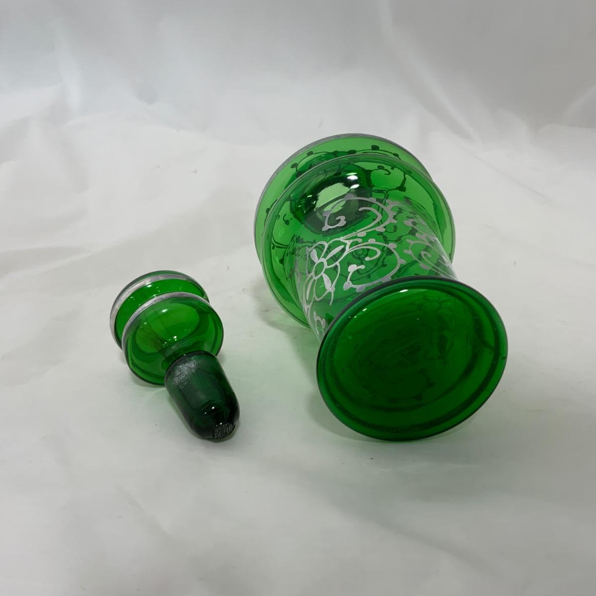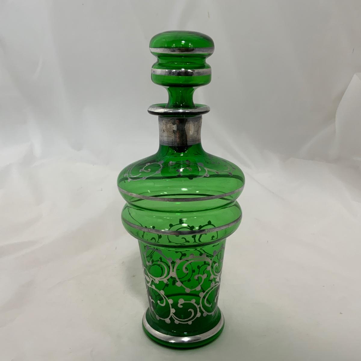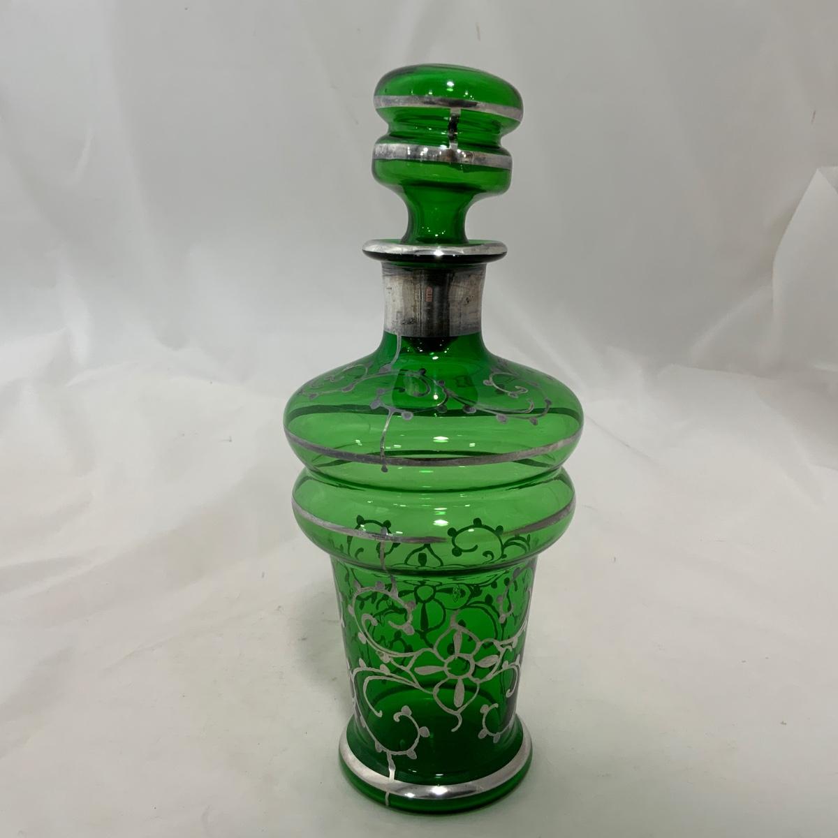 .9. Emerald Green Hand Silvered Decanter | c. 1910