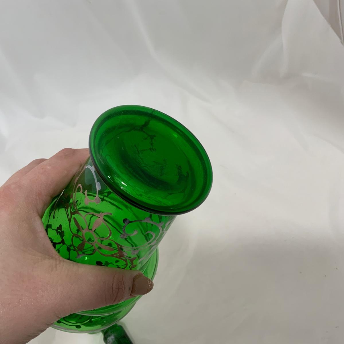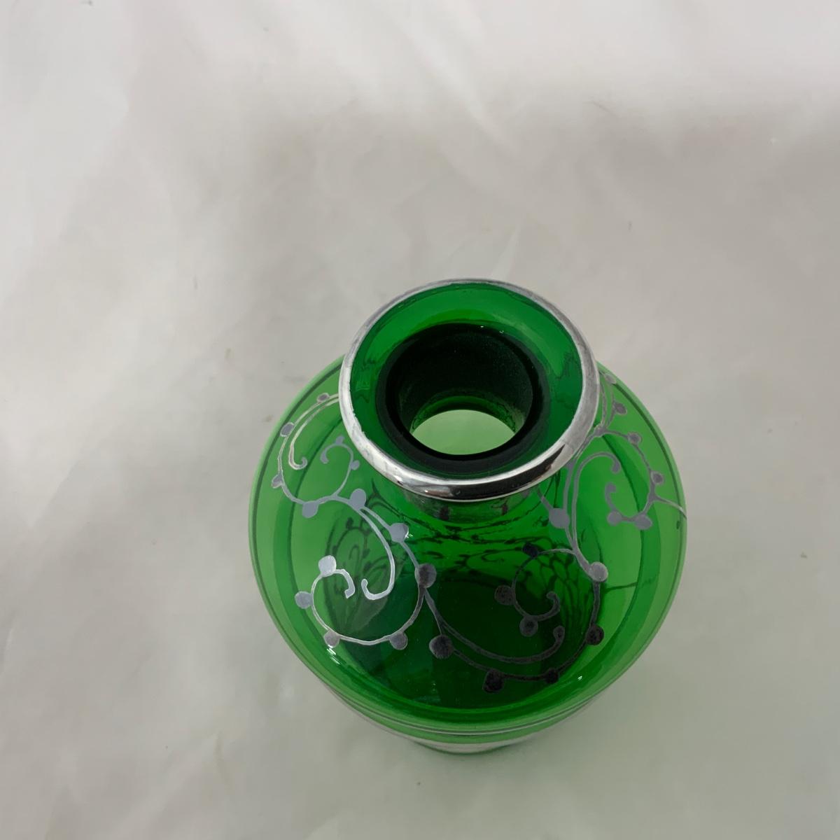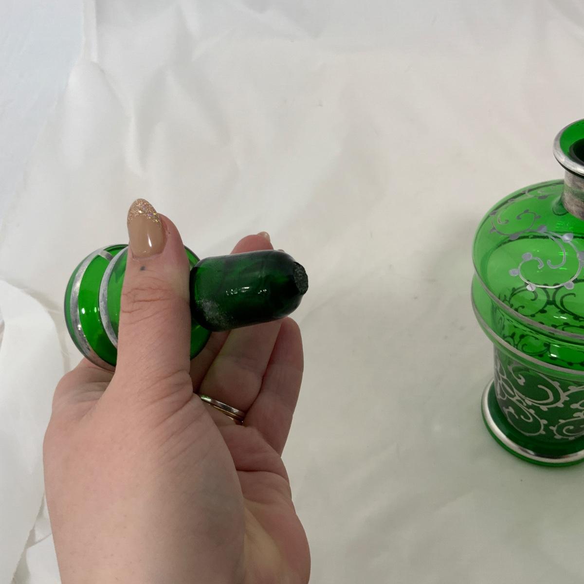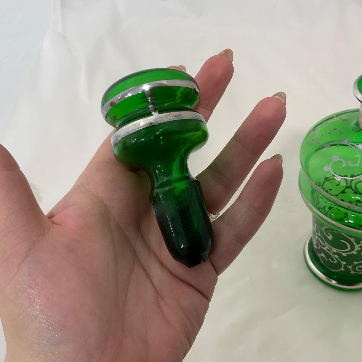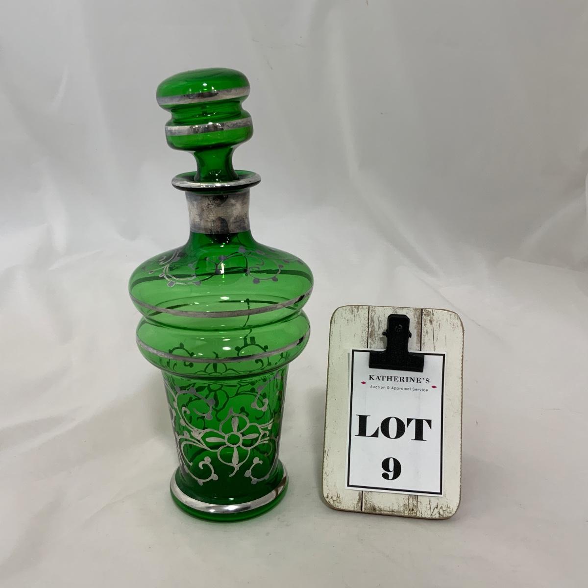 .9. Emerald Green Hand Silvered Decanter | c. 1910