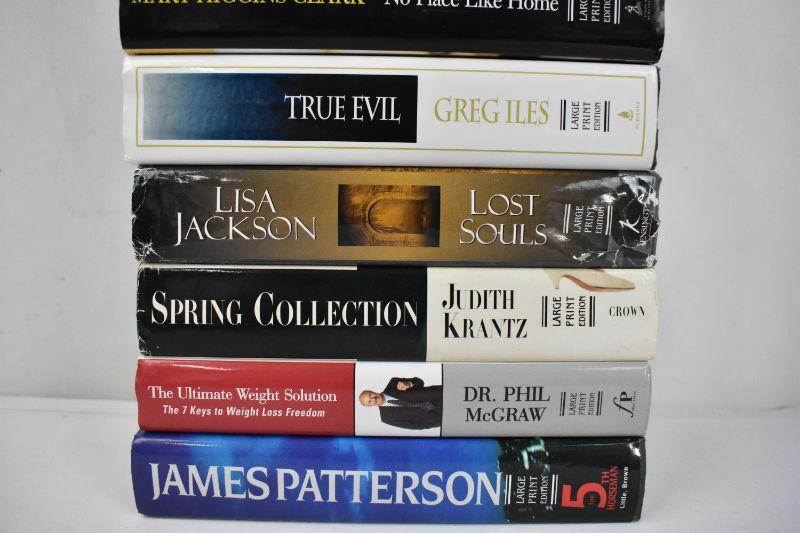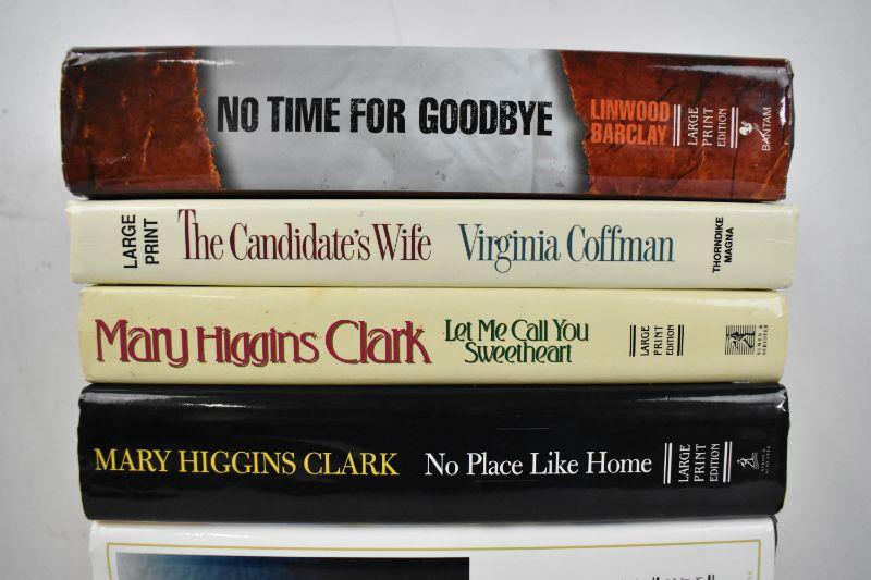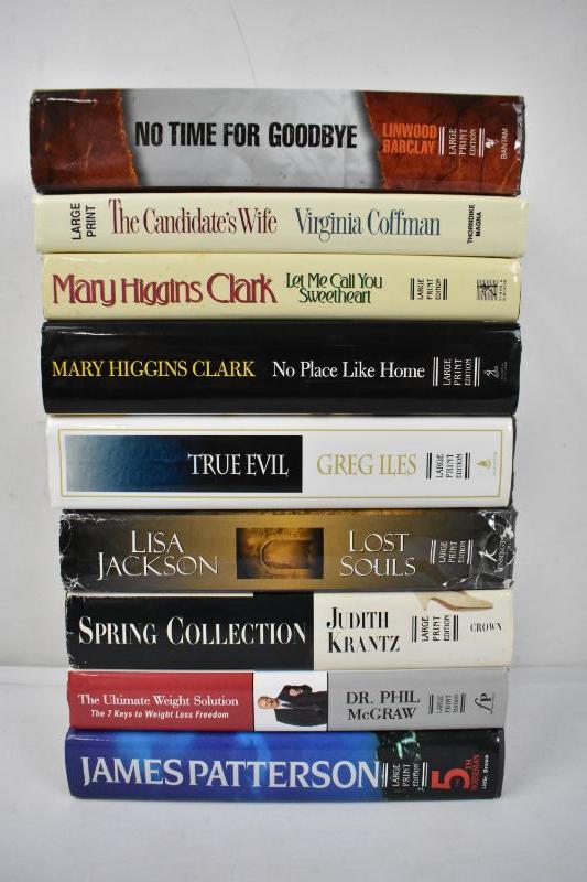 9 Hardcover Books LARGE PRINT: Authors Barclay -to- Patterson