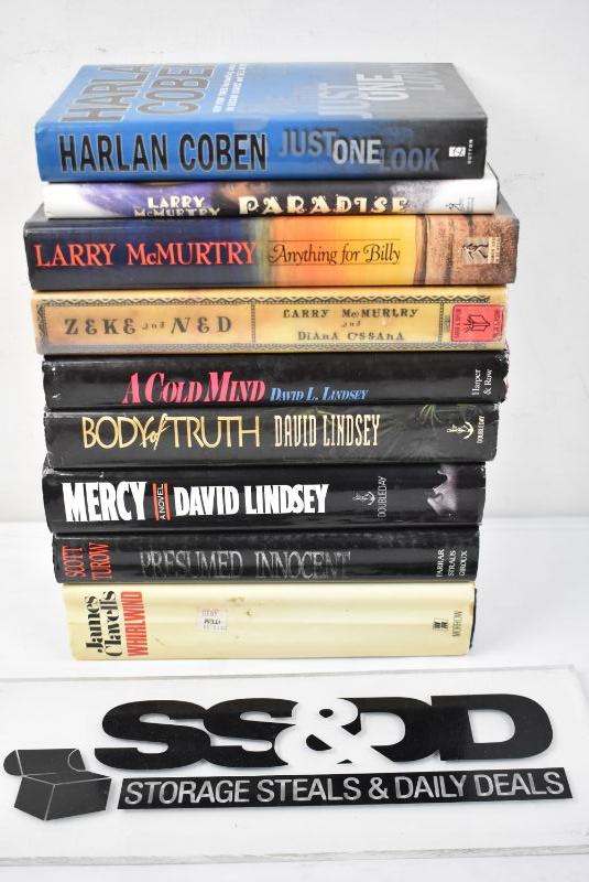 9 Hardcover Fiction Books: (3)McMurtry (3)Lindsey, Turow, Coben, Clavell