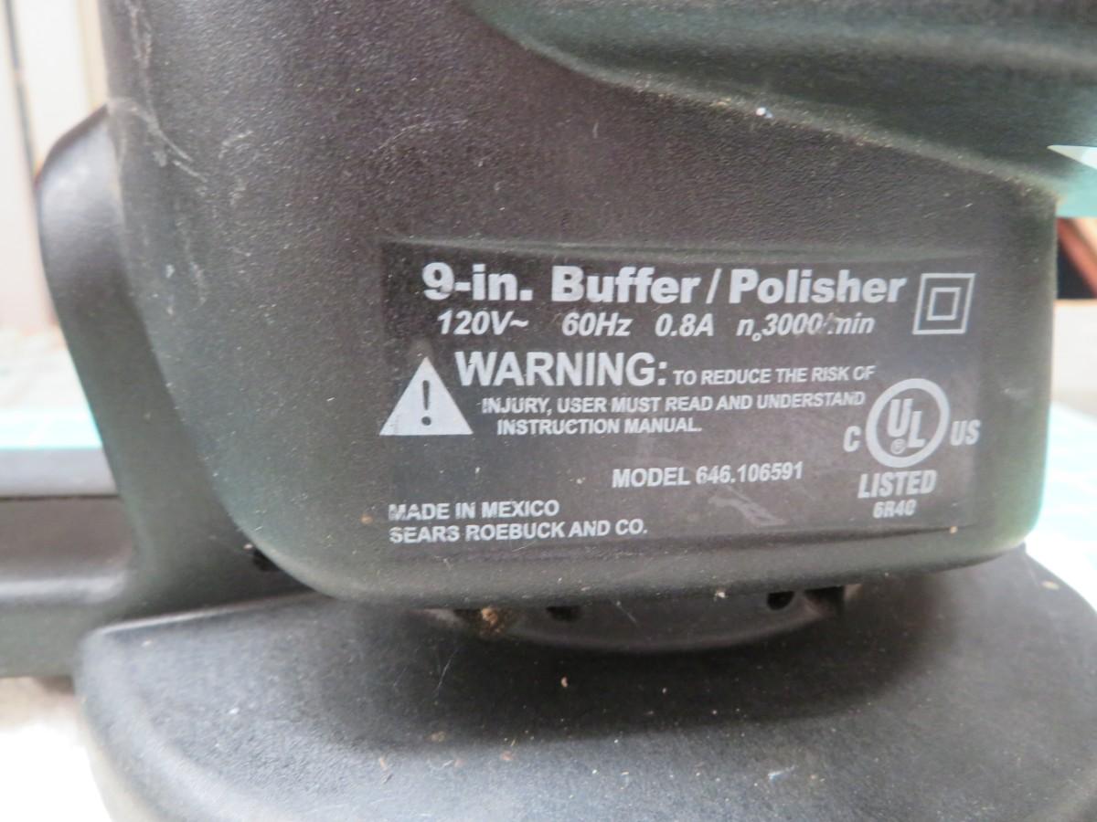 9-inch Sears Roebuck Co. Buffer / Polisher Model 646.106591 120 V - 60 Hz with Buffing Pad.