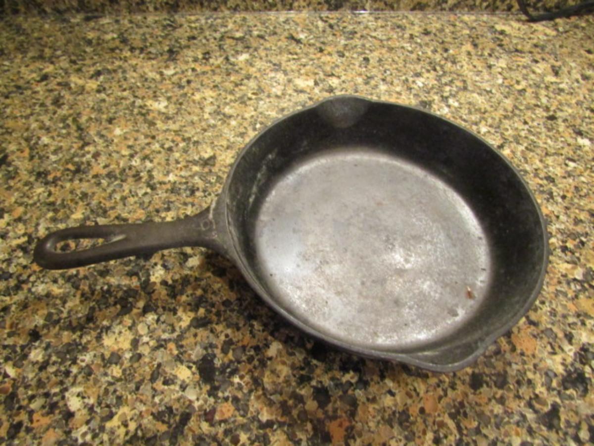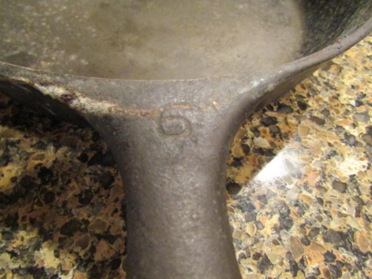 9 Inch Cast Iron Pan by Wagner Ware #6. Needs to be cleaned.