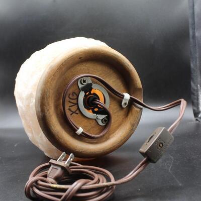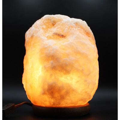 9 Inch Himalayan Crystal Rock Salt Lamp on Wooden Base, there is no significant damage to the lamp and is in good useable condition. Check pictures for more details and for sizing, has been tested and works perfectly. Extremely heavy.