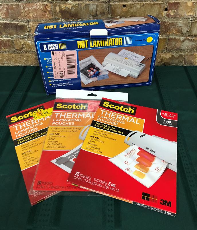 9 INCH HOT LAMINATOR w/ THERMAL LAMINATING POUCHES