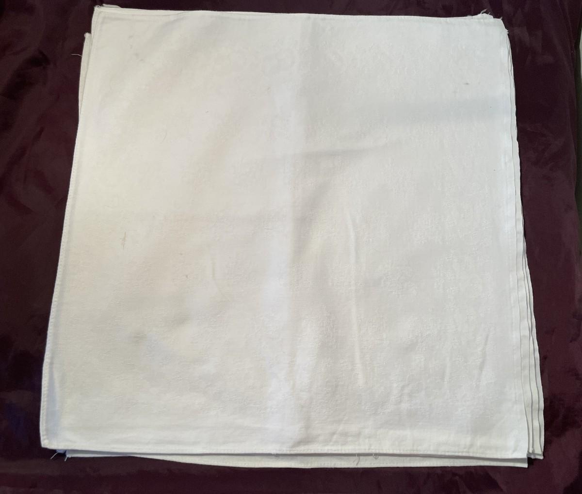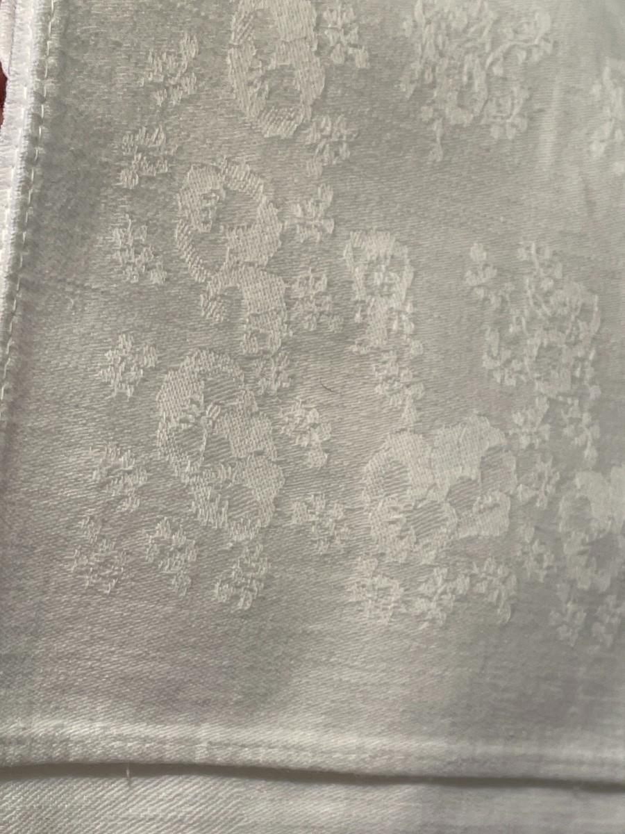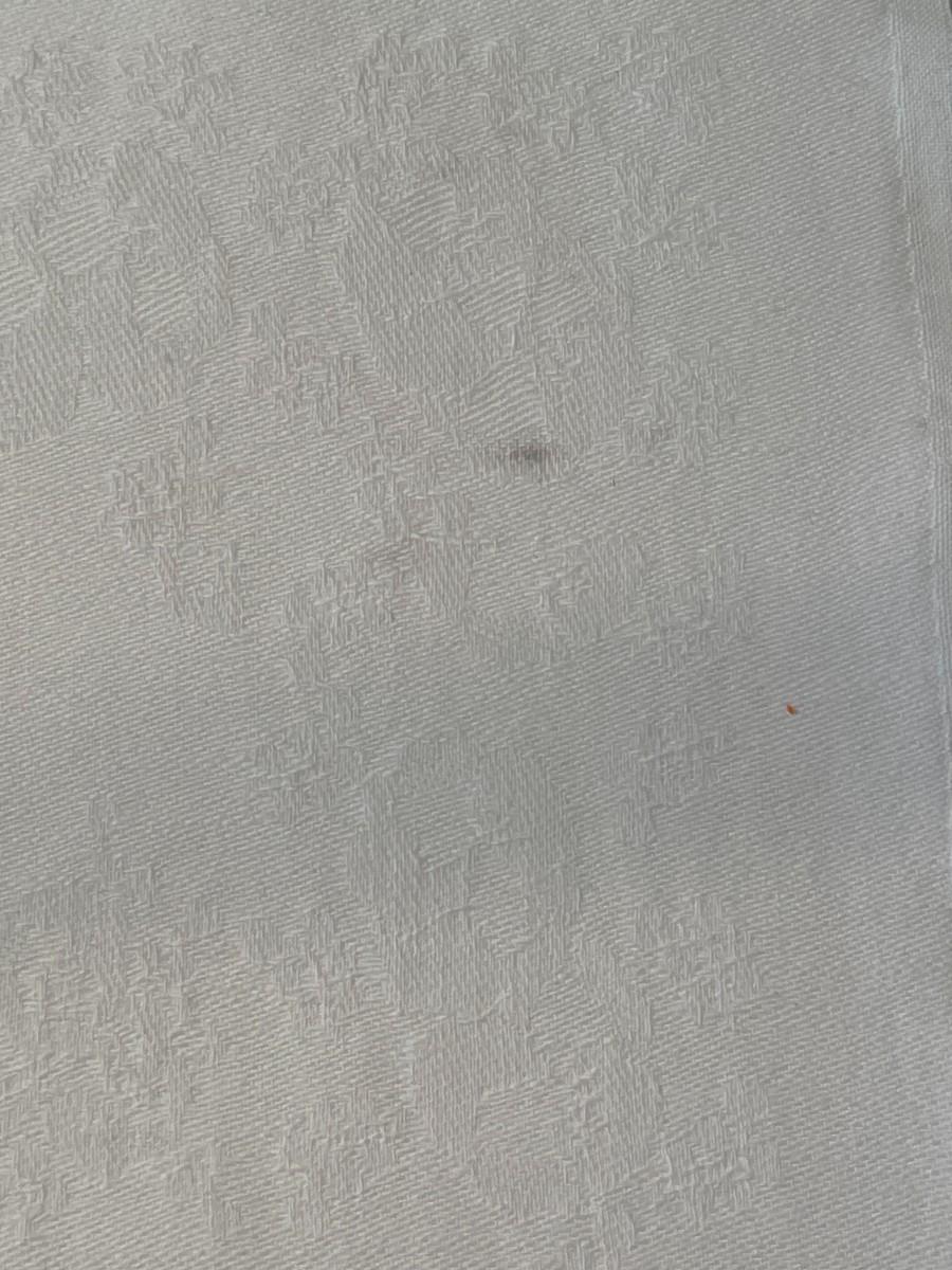 The main pictured napkin is the only one with issues and as you can see from the picture and close-ups, the issues are very minimal. Each napkin is about 17.5 inches square and there is a floral print all over them. The top one has the small issue and the other 8 are pristine.
