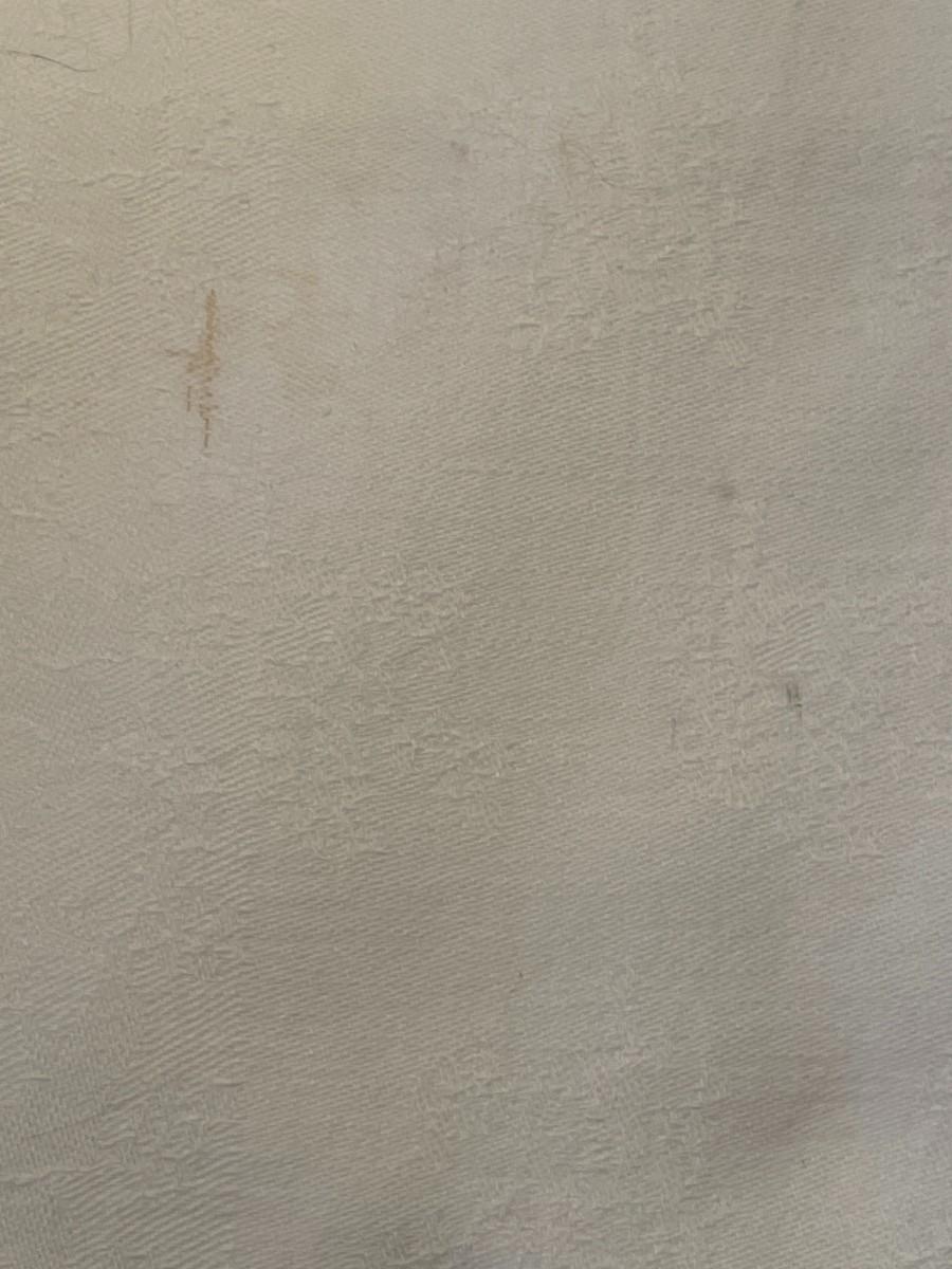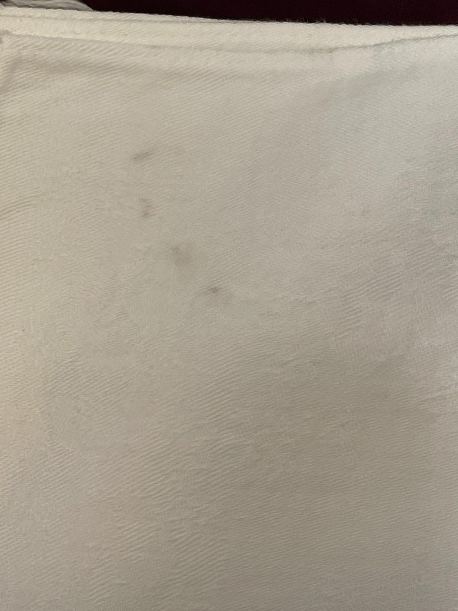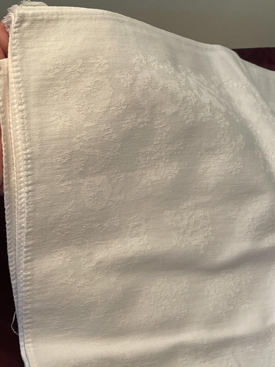 The main pictured napkin is the only one with issues and as you can see from the picture and close-ups, the issues are very minimal. Each napkin is about 17.5 inches square and there is a floral print all over them. The top one has the small issue and the other 8 are pristine.