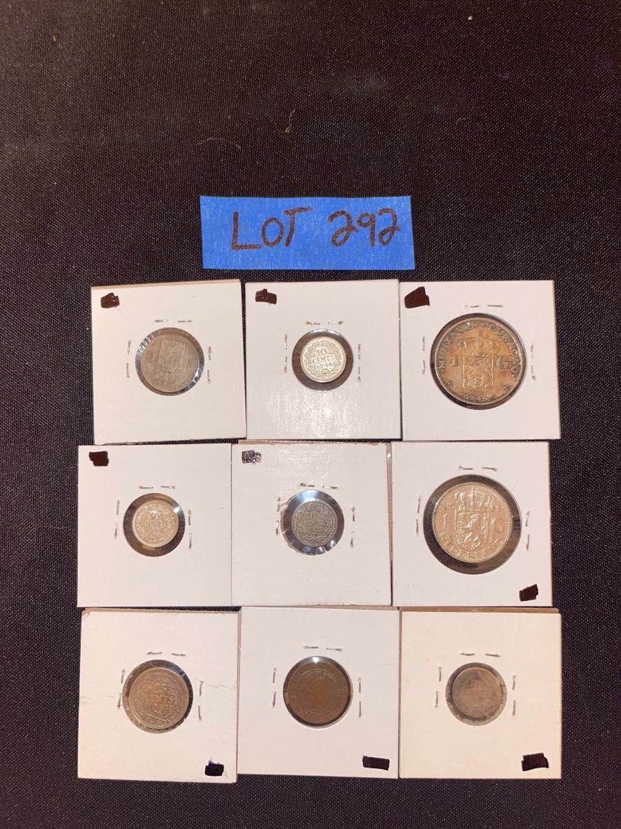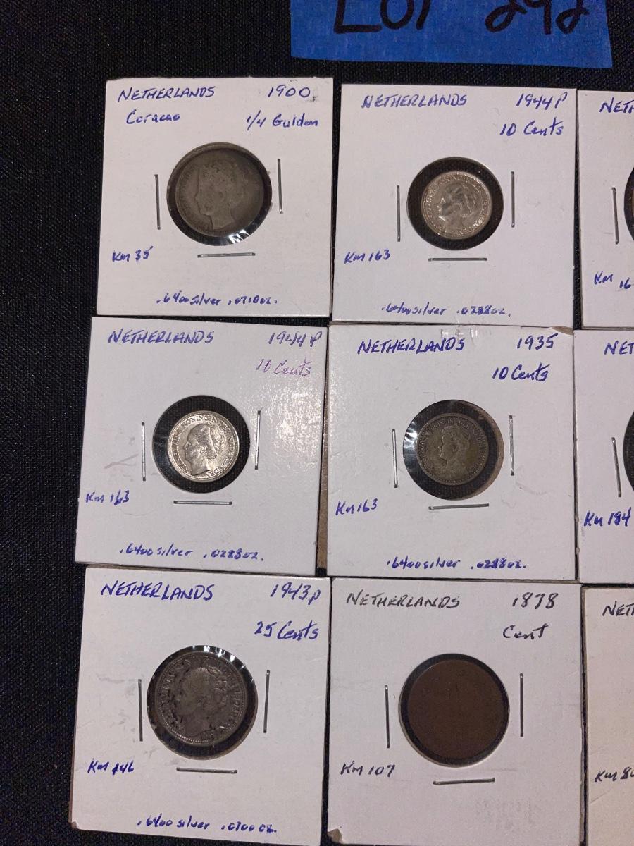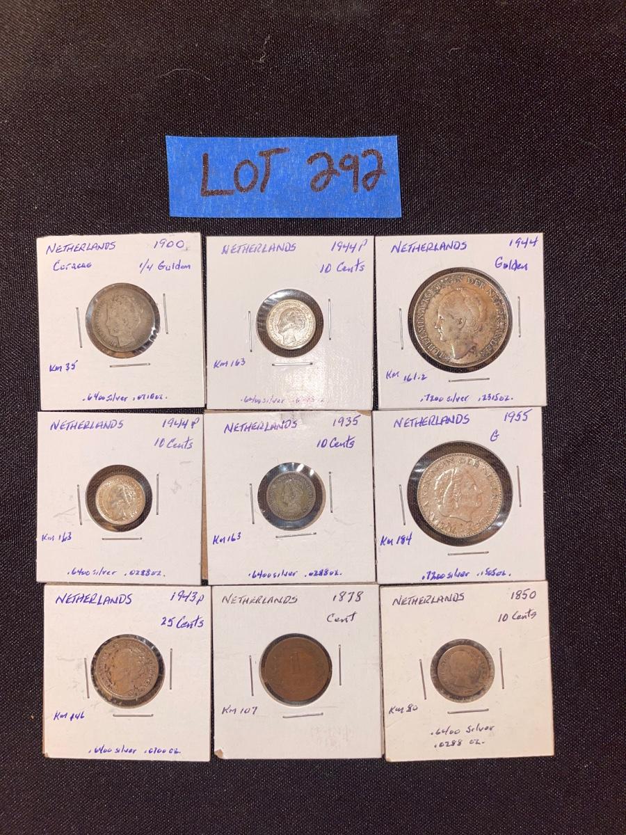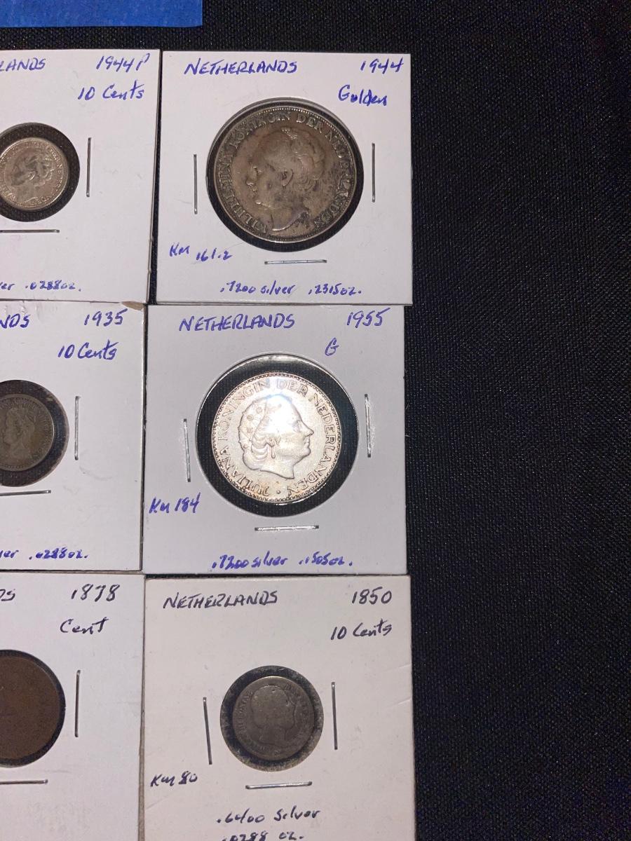 1878 KM 107 cent, 1900 coracao 1/4 gulden km 35, 1944P 10 cents km 163, 1944 gulden km 161.2, 1944 10 cents km 163, 1935 10 cents km 163, 1955 G Km 184, 1850 10 cent km 80, 1943P 25 cent km 146