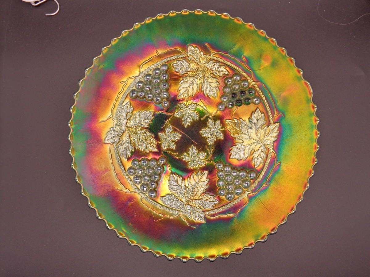 9" Northwood Gr Carnival Grape & Cable Spatula Ftd #45