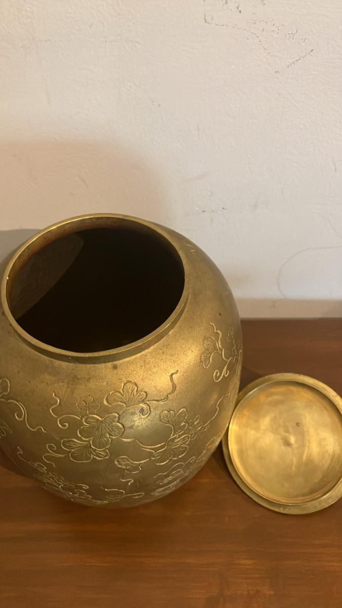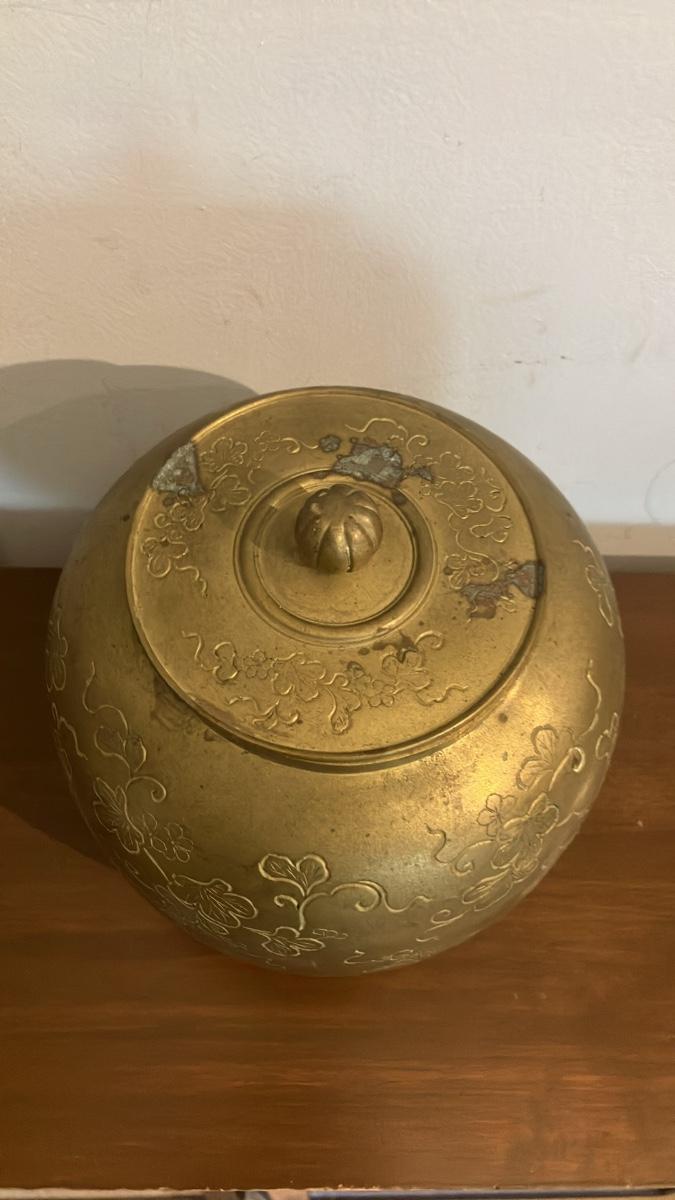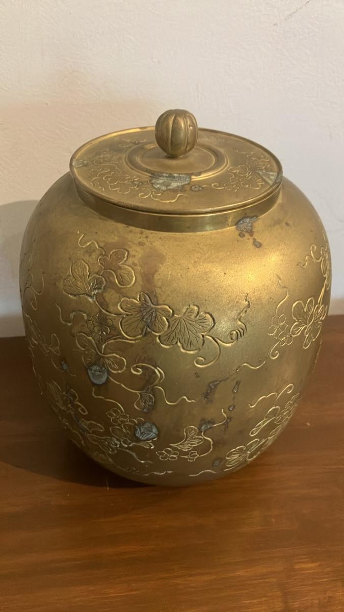 9” Old Chinese Bronze Gold Dynasty Etched Ginger Jar