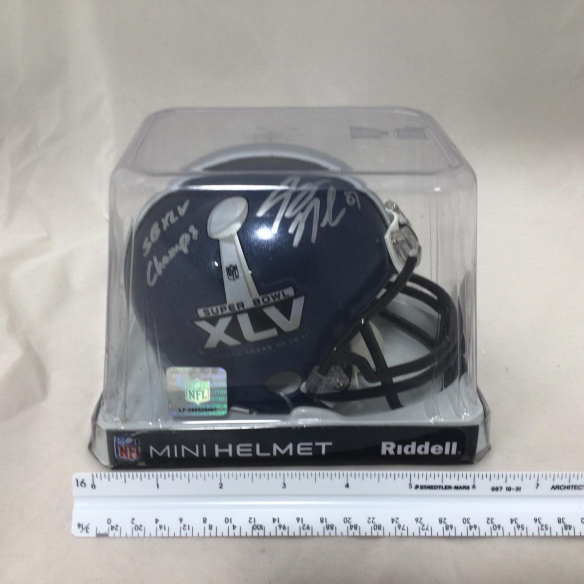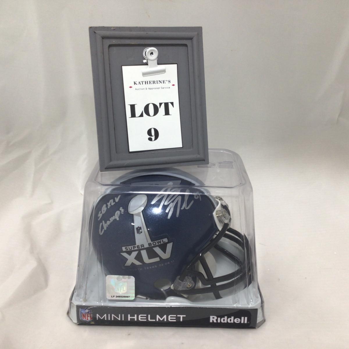 Jordy Nelson Super Bowl XLV mini helmet Signed with no Certificate of Authenticity, item is assumed authentic however not guaranteed. Please see photos for details and condition. ::: Shipping is available on this lot. If you require shipping you must let us know at the close of the auction. We will coordinate with you after the item has been won. Shipping fees will include insurance up to or exceeding the value of all items being mailed. If you have any questions regarding this lot please contact the auctioneer either via this website, by direct email or by phone. PICK UP TIMES and other important information can be found in the TERMS and DESCRIPTION of the auction. Please take a look for pertinent information. Thanks!