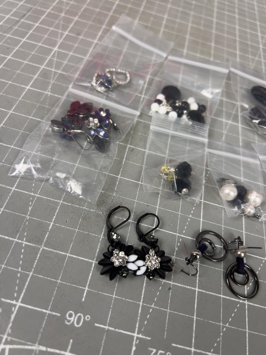 9 Pair of Black Theme Costume Jewelry Earrings