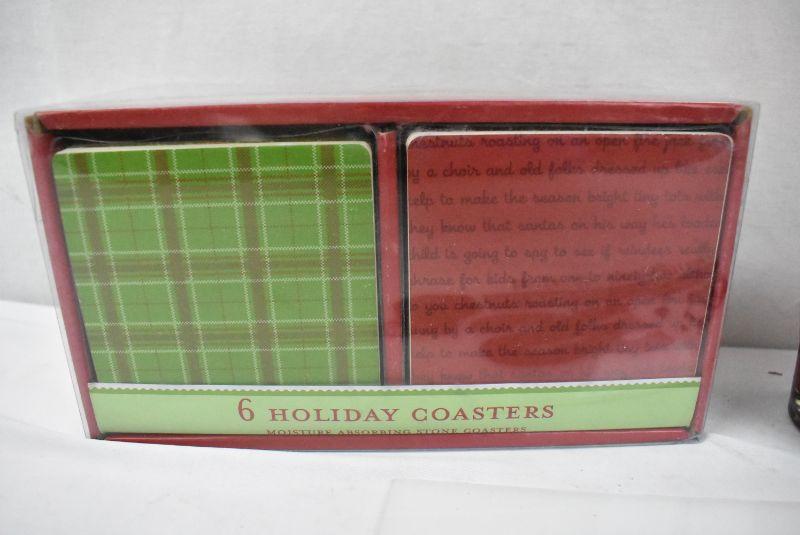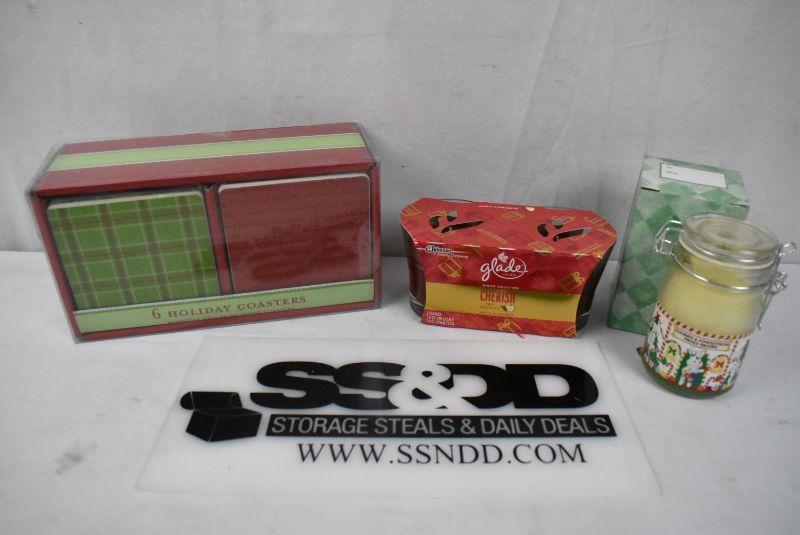 9 pc Christmas: 6 Coasters & 3 Candles - New