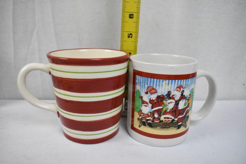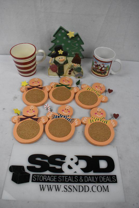 9 pc Christmas Kitchen: 6 Coasters with Storage Stand + 2 Holiday Mugs