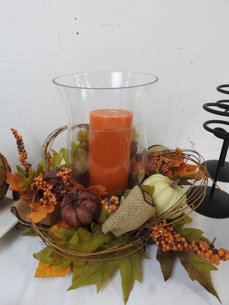 9 pc Fall/Halloween Decor: Floral Centerpiece, Platters, Light up Pumpkin