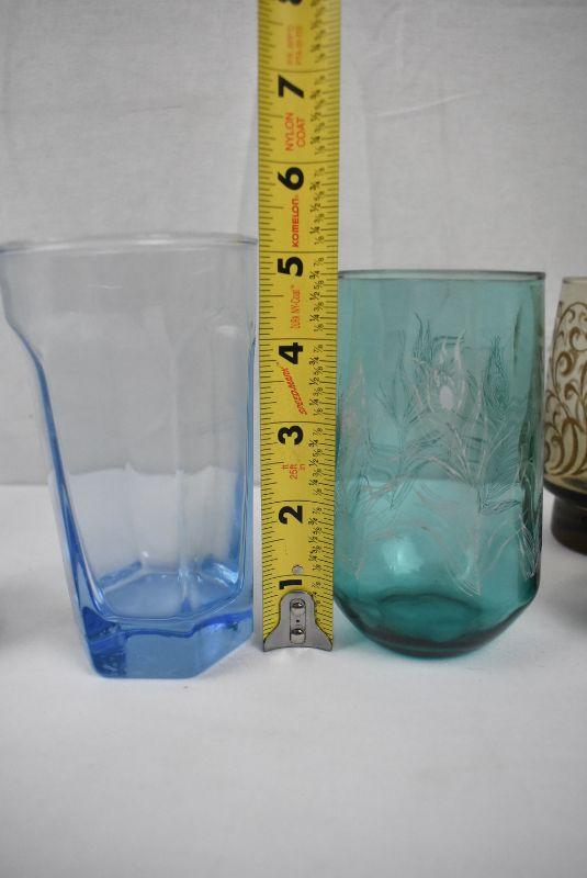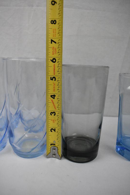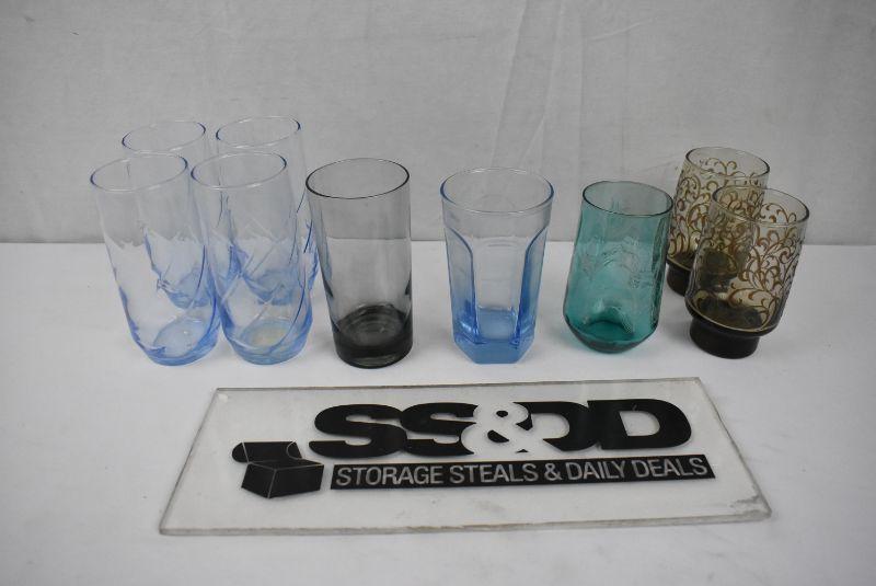 9 pc Glasses: 4 Blue, 1 black, 1 blue, 1 peacock, 2 brown