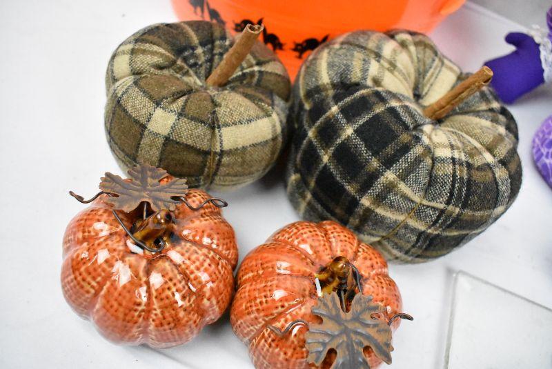 9 pc Holiday Decor: Halloween/Fall: Candy Bowl, Pumpkin Head Doll, & More