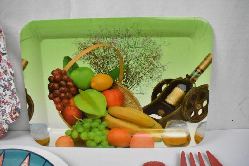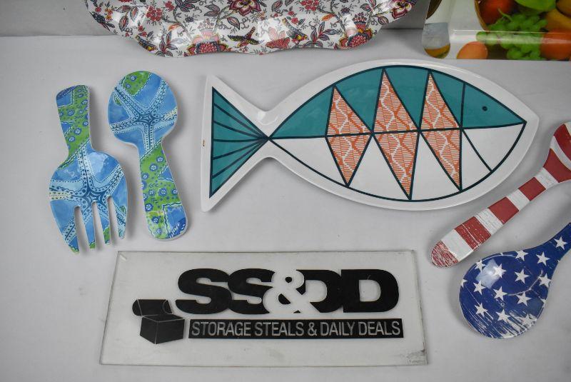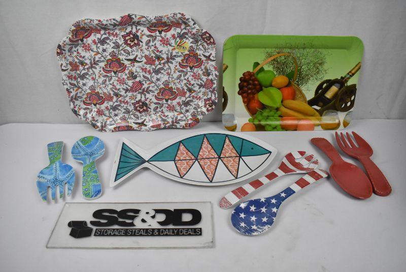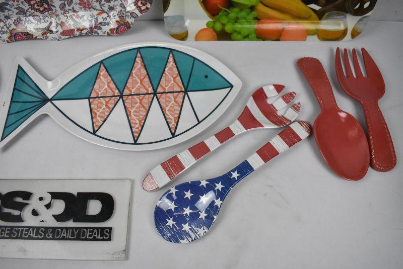 9 pc Melamine Serving Ware: 3 trays + 3 sets of serving utensils