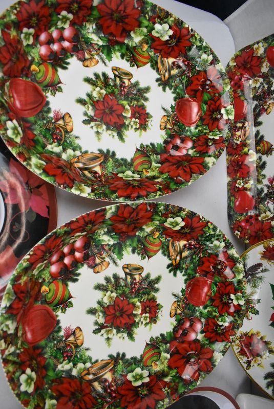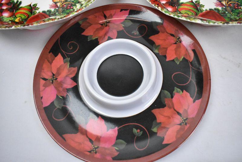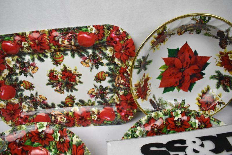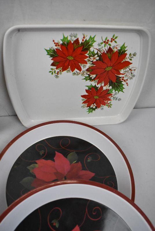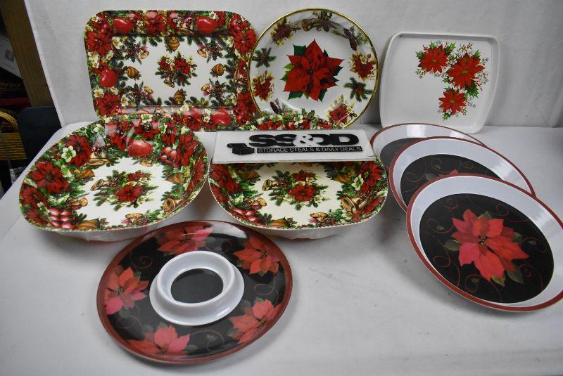 9 pc Plastic Serving Trays, all with Poinsettia Theme