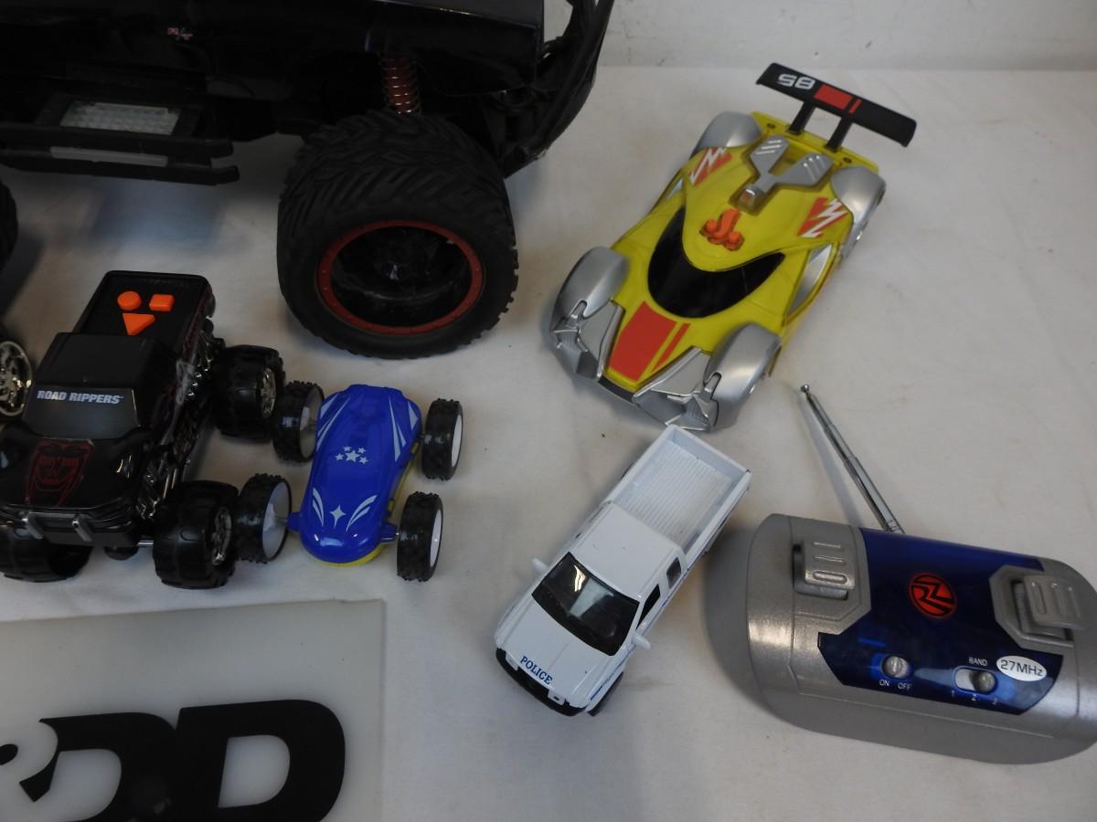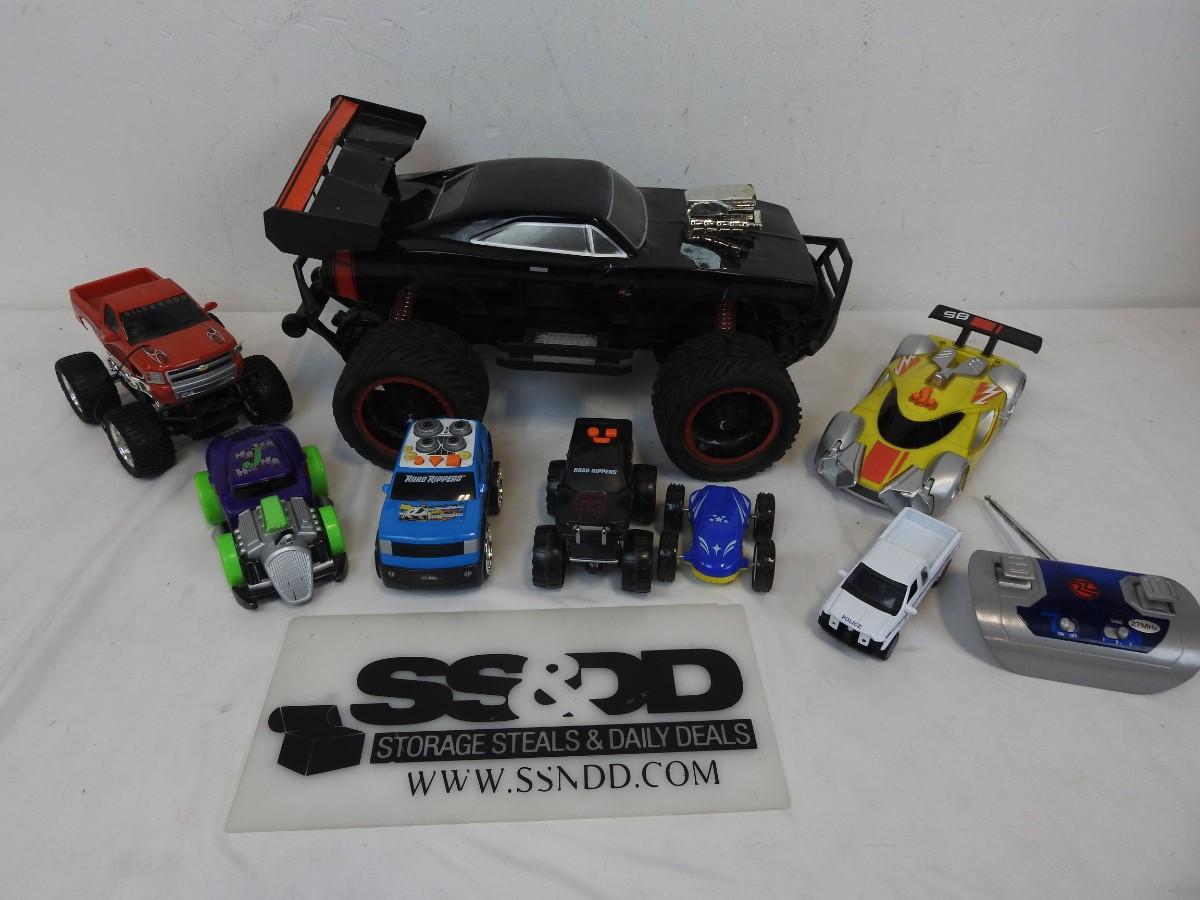 9 pc Toy Cars. Metal Police Truck, 1 R/C. Road Rippers, Silverado