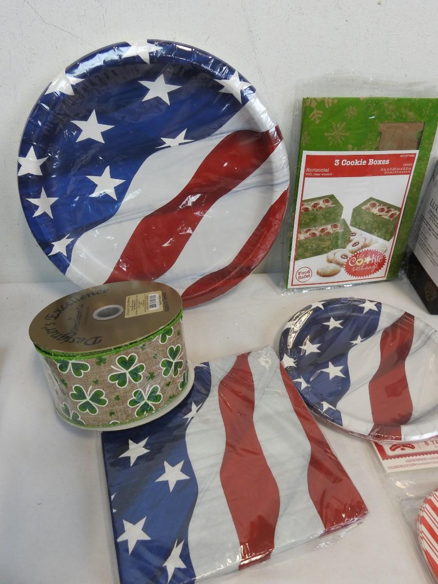 9 pc Various Holiday Items: Patriotic Picnic, Valentine's Day, Christmas, St Patrick's Day - New