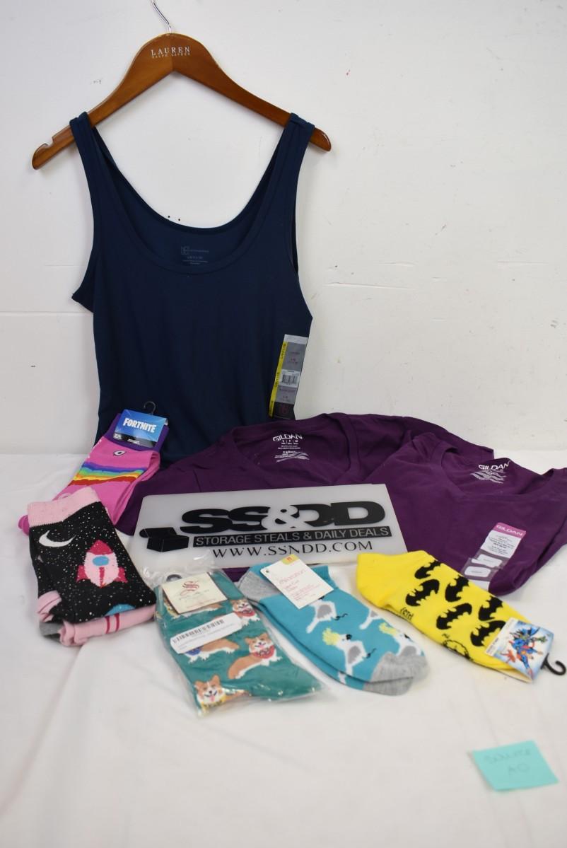 9 pc Women's Apparel, Tank top, 2 Gliden V neck T-Shirts, 6 pairs of socks - New