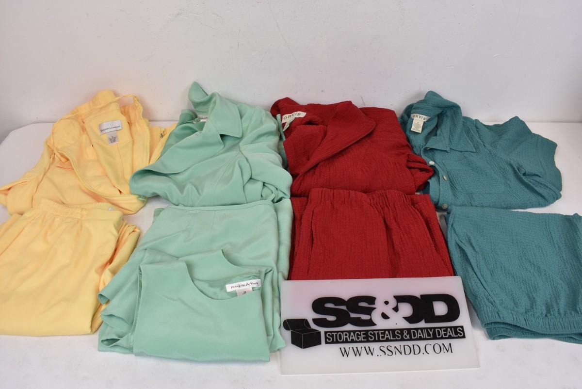 9 pc Women's Clothing Sets: Yellow Draper's & Damon's Med, 3 pc Preston & York 12, Red Orvis Med, Teal Orvis Med