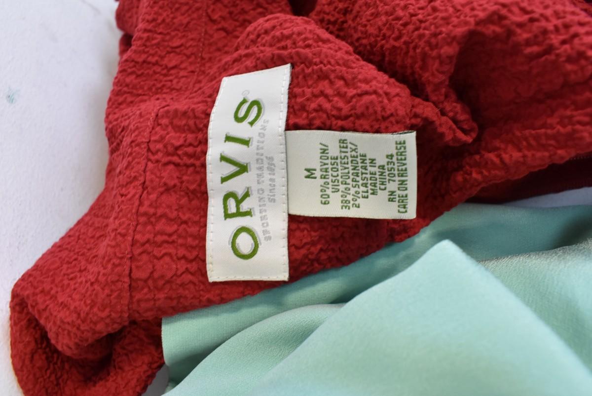 9 pc Women's Clothing: Yellow Draper Med, 3 pc Preston York 12, 2 sets Orvis Med
