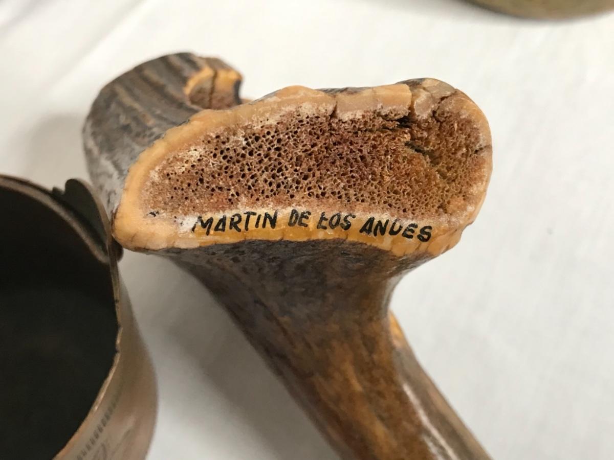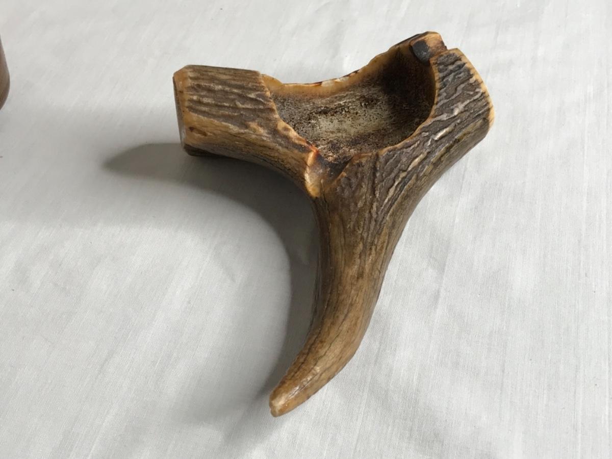 Vintage carved antler ash tray/pipe holder by Martin De Los Andes signed