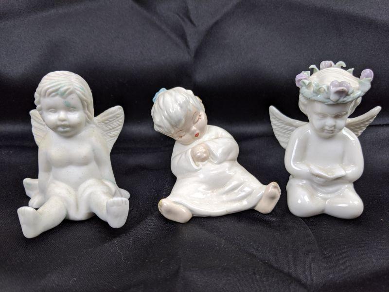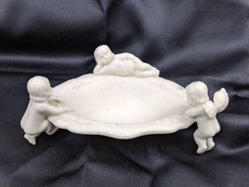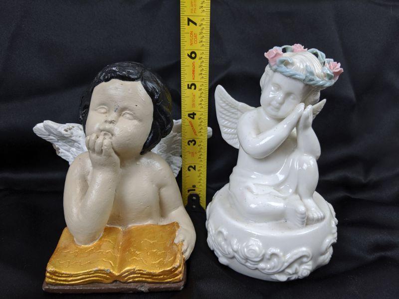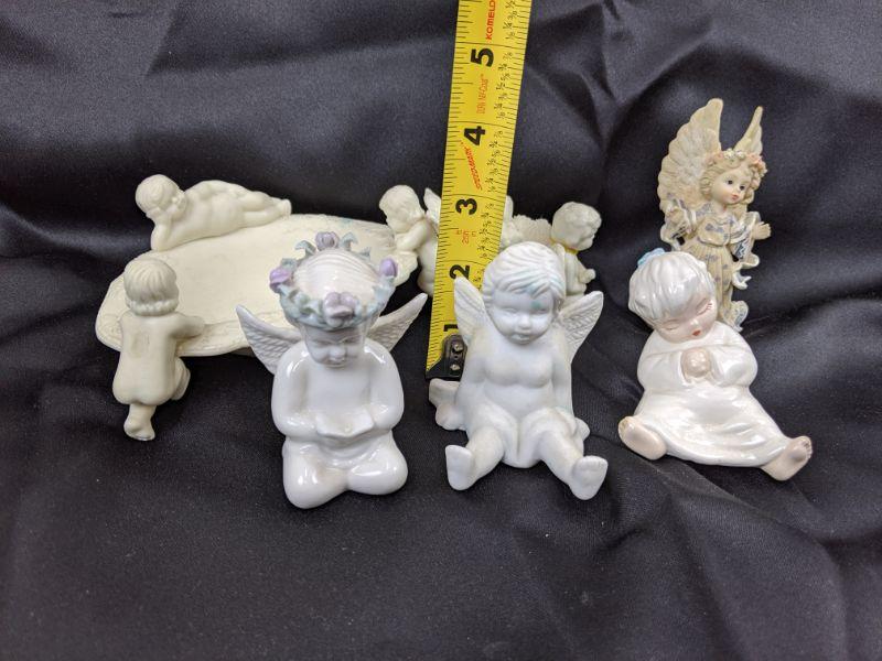 9 Piece Cherubs Lot - Most Ceramic, Some Hard Plastic - Large Plate Repaired