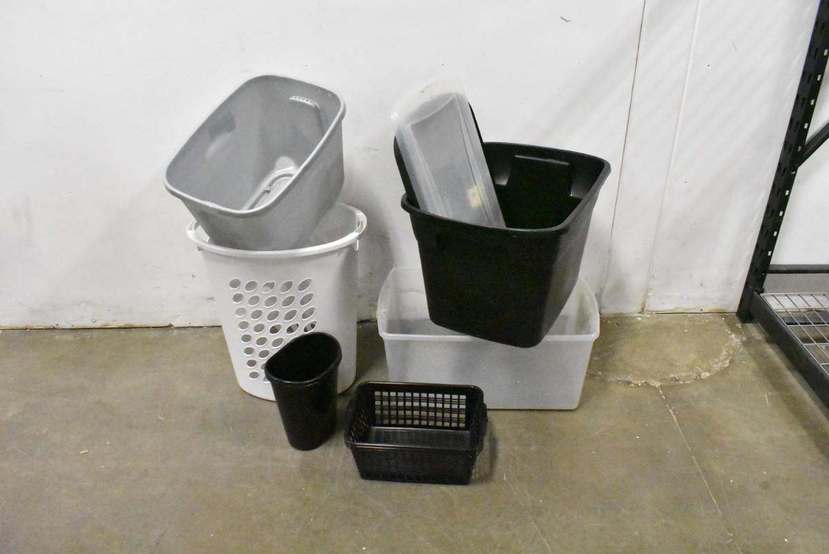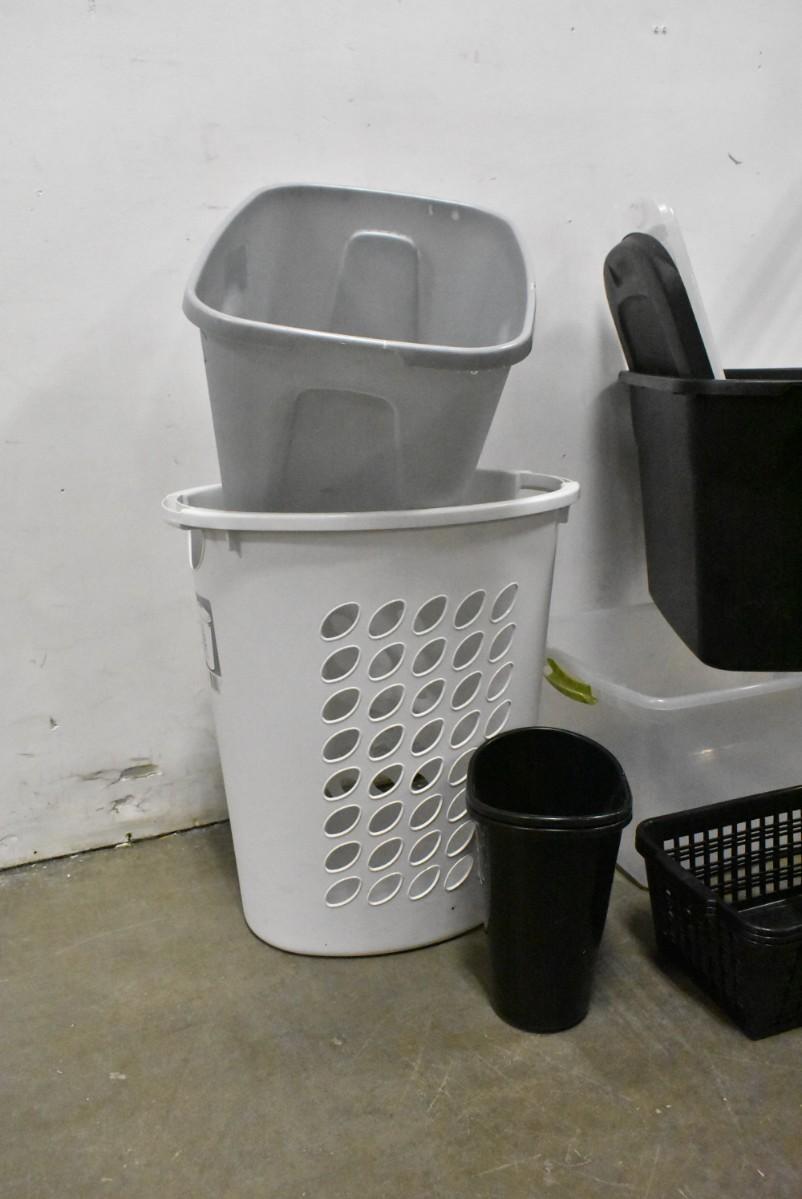 9 Piece Home Organization, 3 Plastic Totes, 3 Small Baskets, Laundry Basket