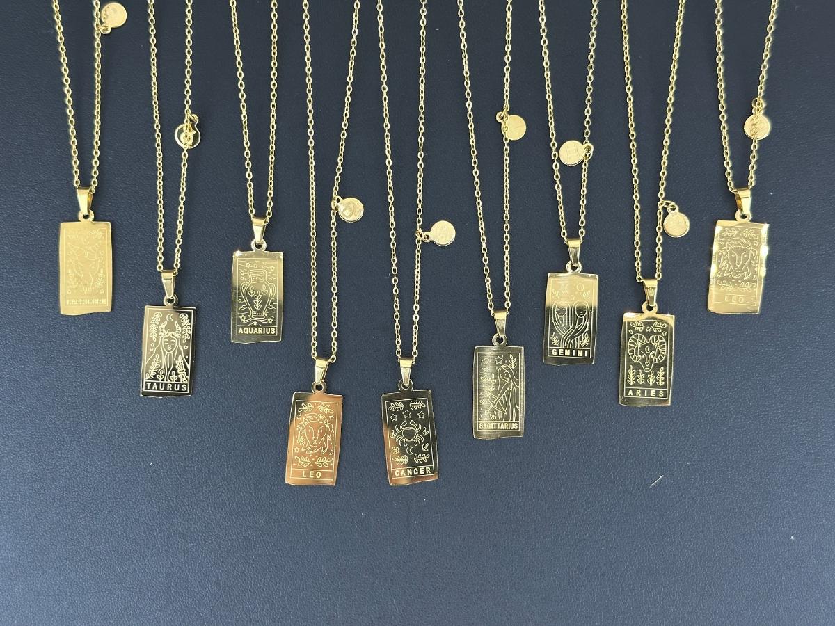 1. 9 pieces Birth Months Zodiac Collection Necklaces Mix Lot . This is not real gold; it is a gold-colored piece matched to an 18K tone.