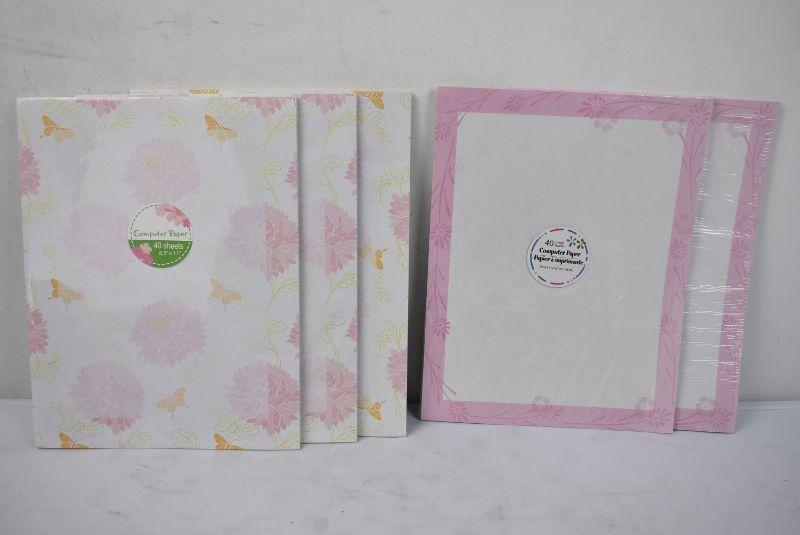 9 packages Decorative Computer Paper: Pink Floral, Butterflies, Purple floral, Gray Houndstooth