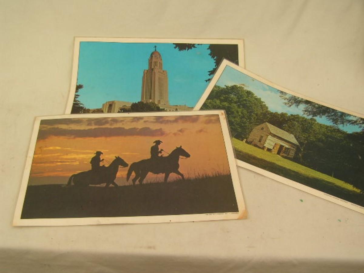 A group of 9 place matts, reversible, pictures of life in Nebraska on one side, generic on the other side. About 12'x17" each