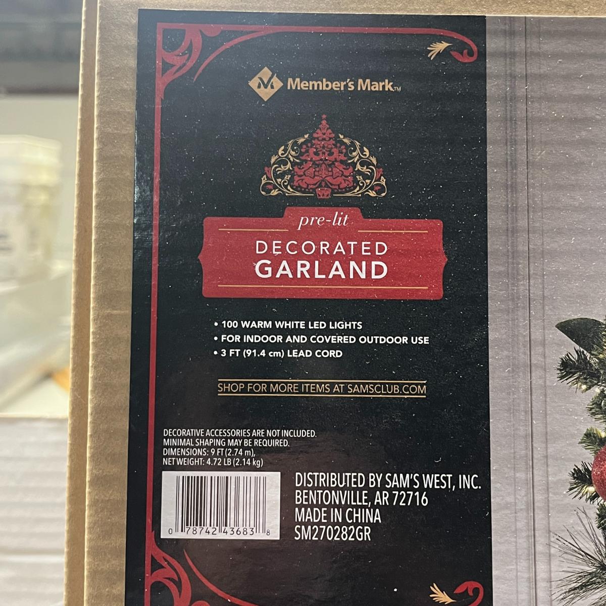 100 LED lights, red/gold decor, indoor use, 3' lead cord.