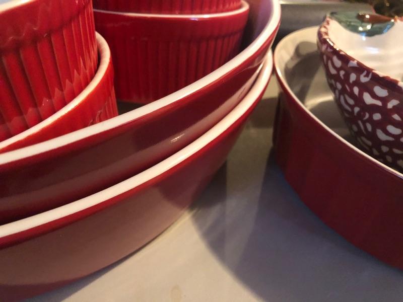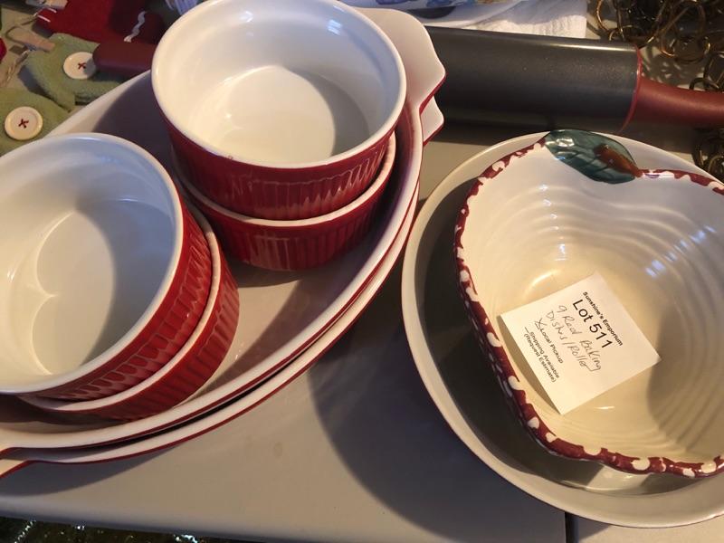 9 Red Porcelain Baking Dishes and Kitchen Aid Roller