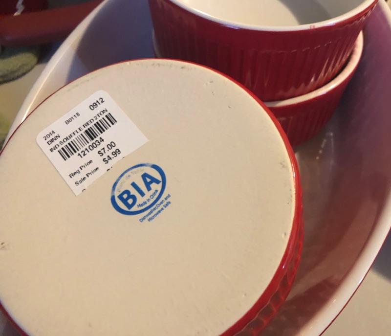 9 Red Porcelain Baking Dishes and Kitchen Aid Roller - Apple Dish, 4 BIA Porcelain Baking Dishes (small), 3 Home Stoneware Porcelain Baking Dishes - Lot 511
