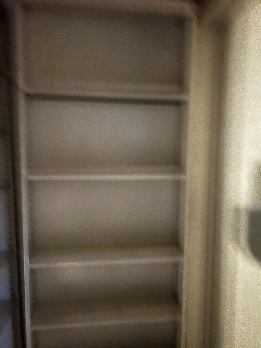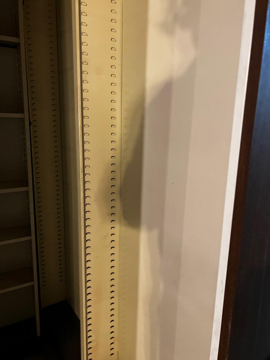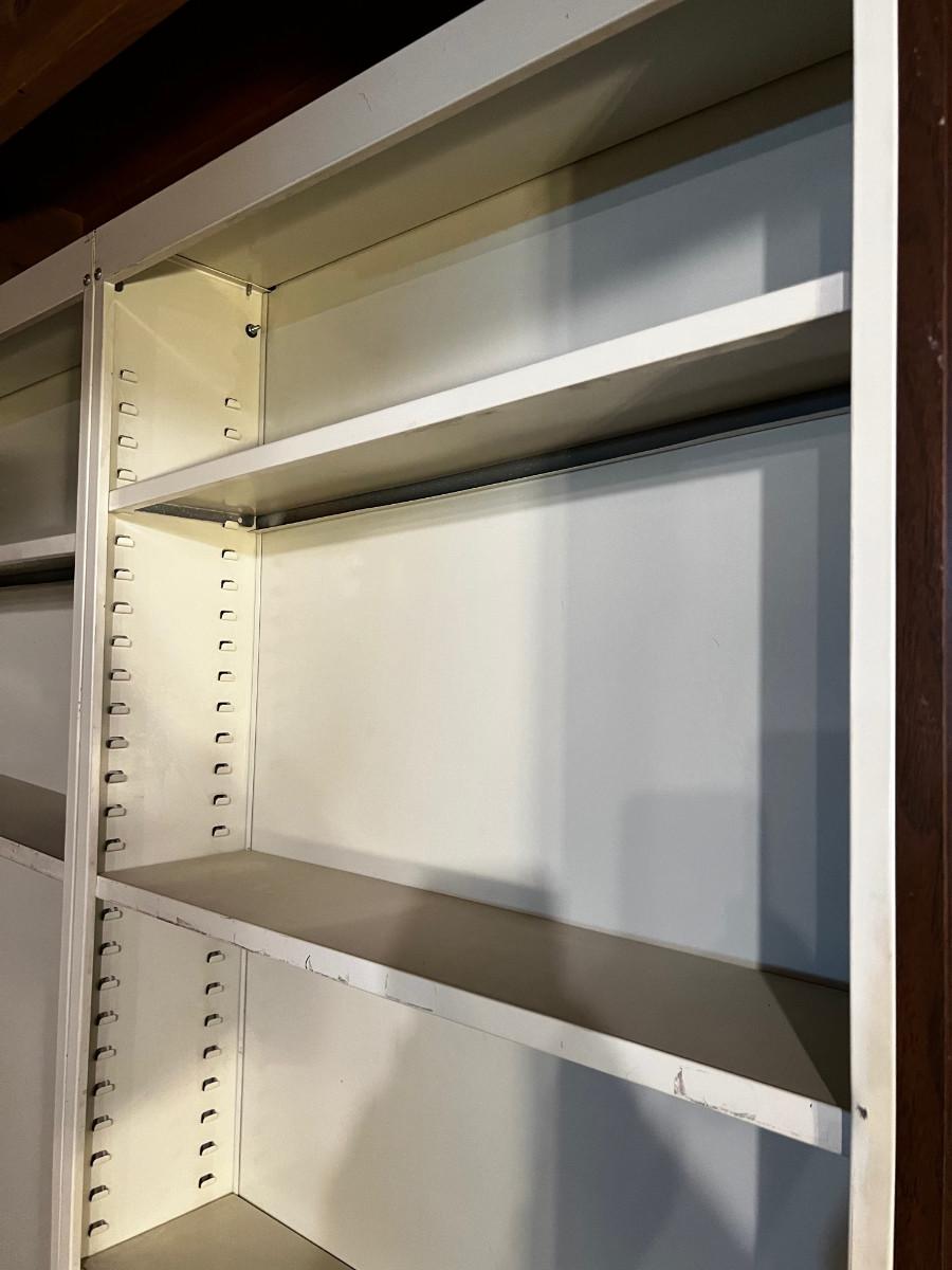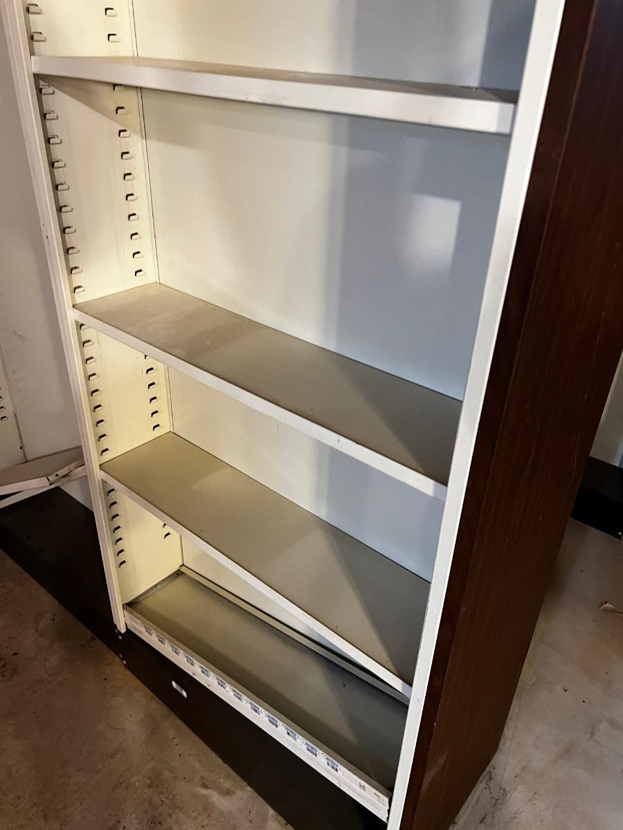 Double Sided. Tall. May be missing a few shelves. METAL 58" X 15" X 86" In Basement! Must be prepared to move yourself out of basement. 9 Total Bring Wrench and screwdrivers