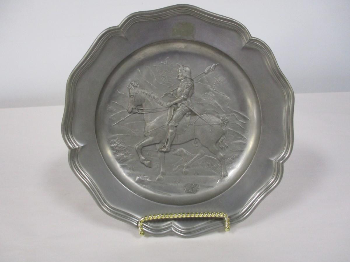 9" Signed Knight Pewter Plate By Albert Durer