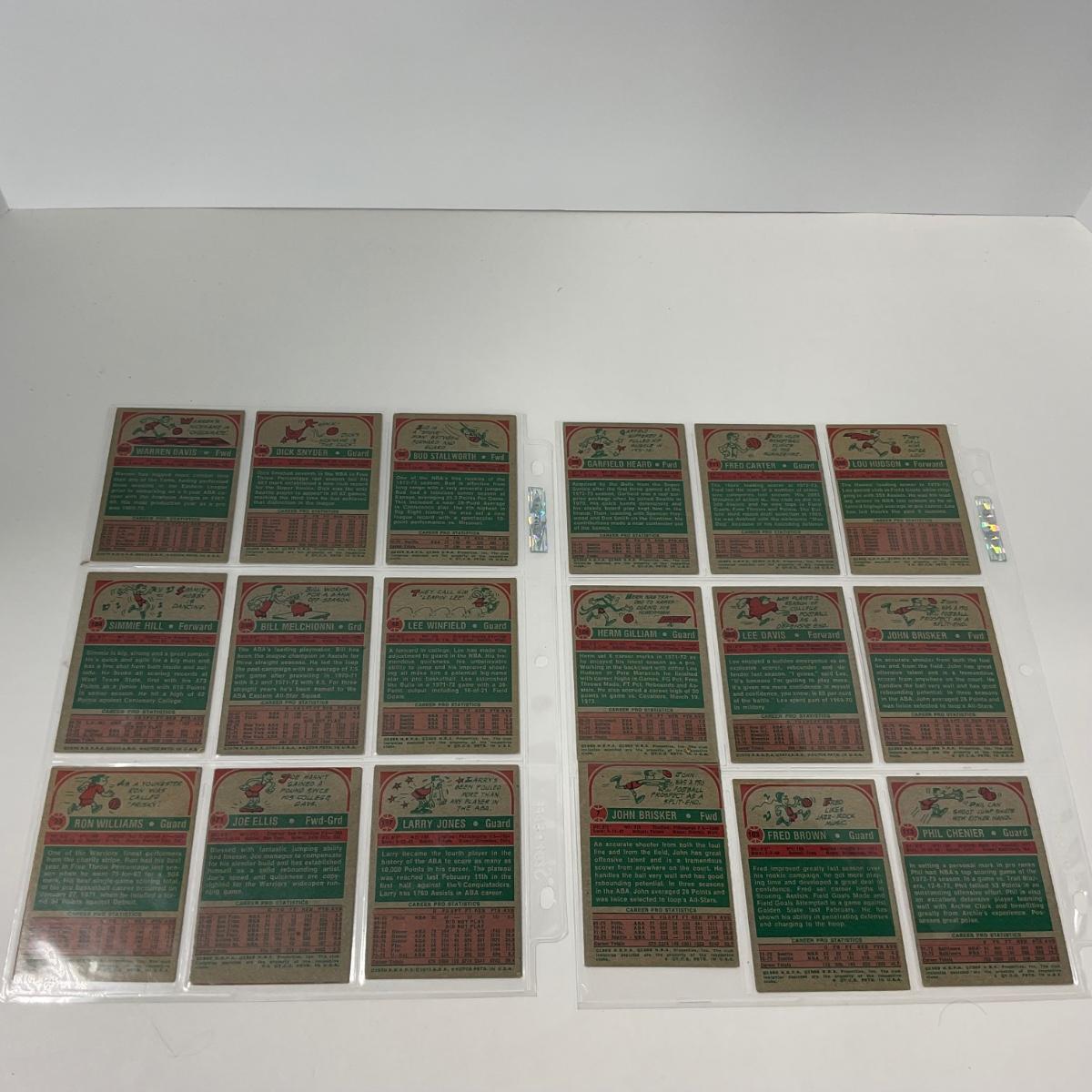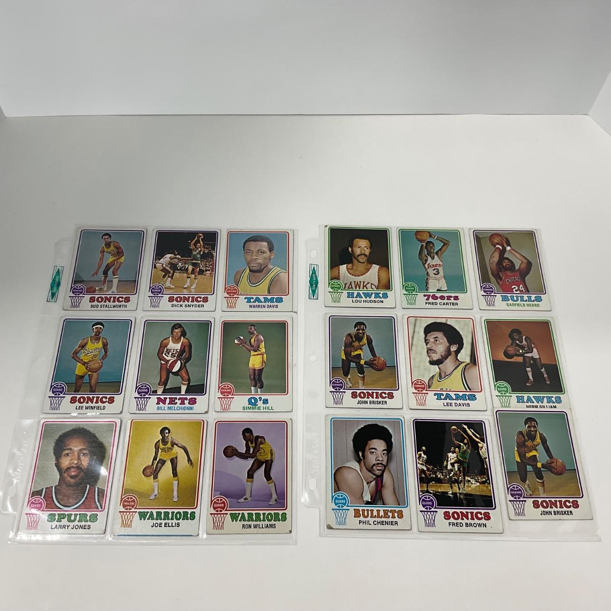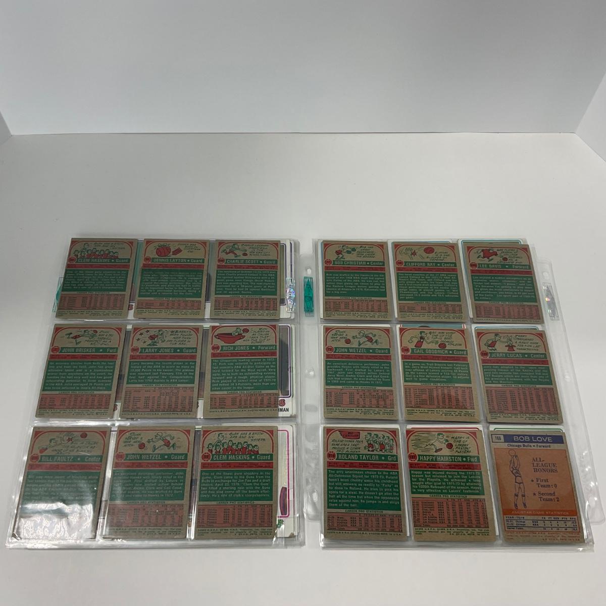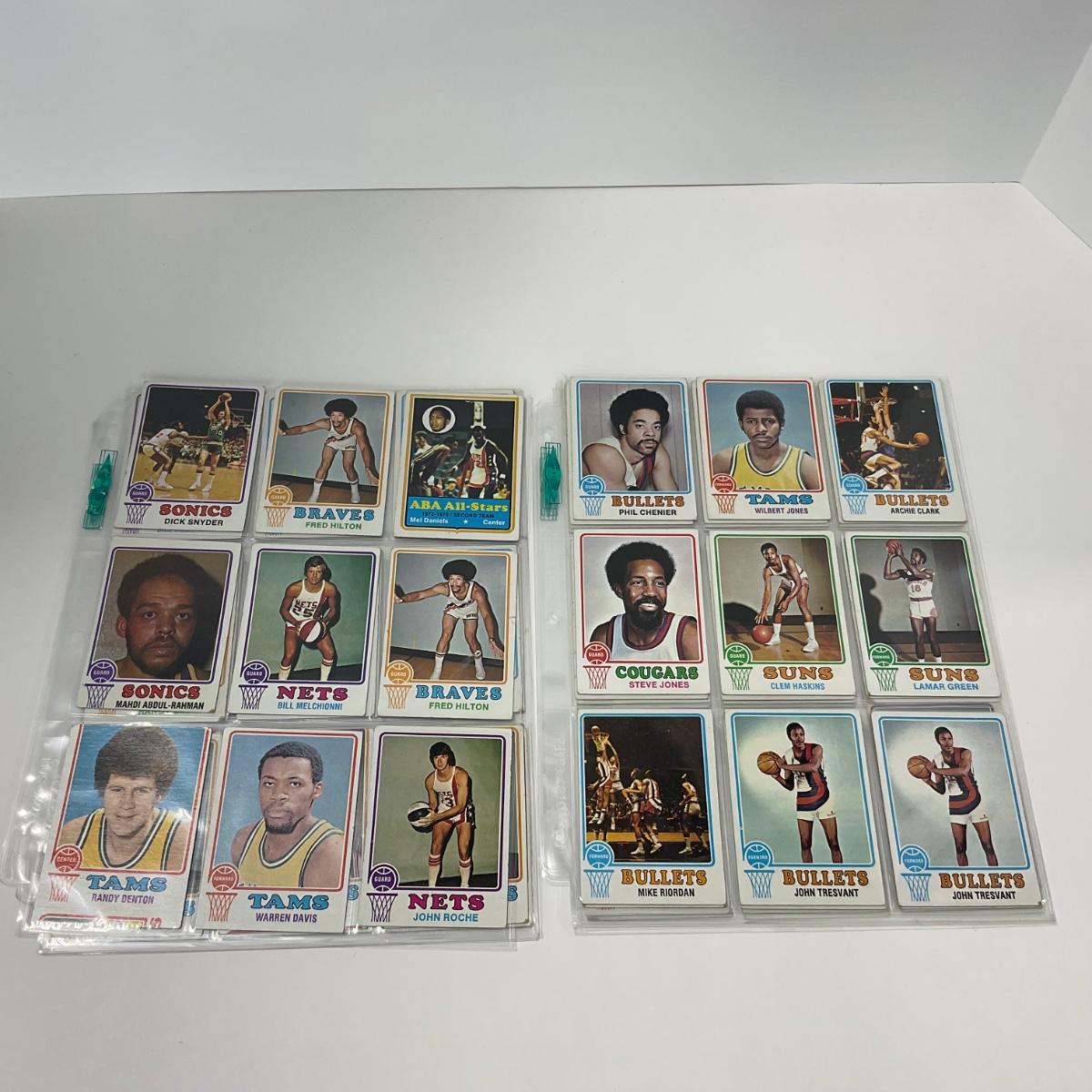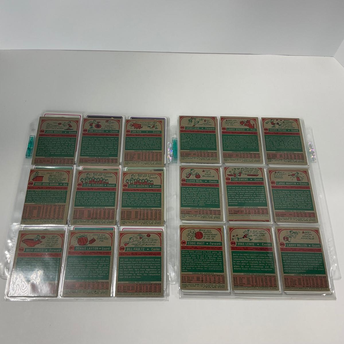 14 pages of vintage Topps Basketball cards. Please see photos for details and condition. ::: Shipping is available on this lot. If you require shipping you must let us know at the close of the auction. We will coordinate with you after the item has been won. Shipping fees will include insurance up to or exceeding the value of all items being mailed. If you have any questions regarding this lot please contact the auctioneer either via this website, by direct email or by phone. PICK UP TIMES and other important information can be found in the TERMS and DESCRIPTION of the auction. Please take a look for pertinent information. Thanks!