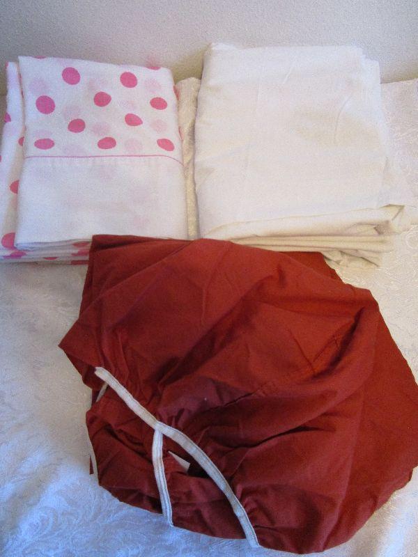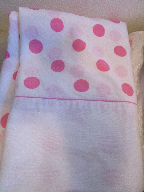 Rust colored fitted sheet, Pink Polka Dot Flat sheet, White flat sheet