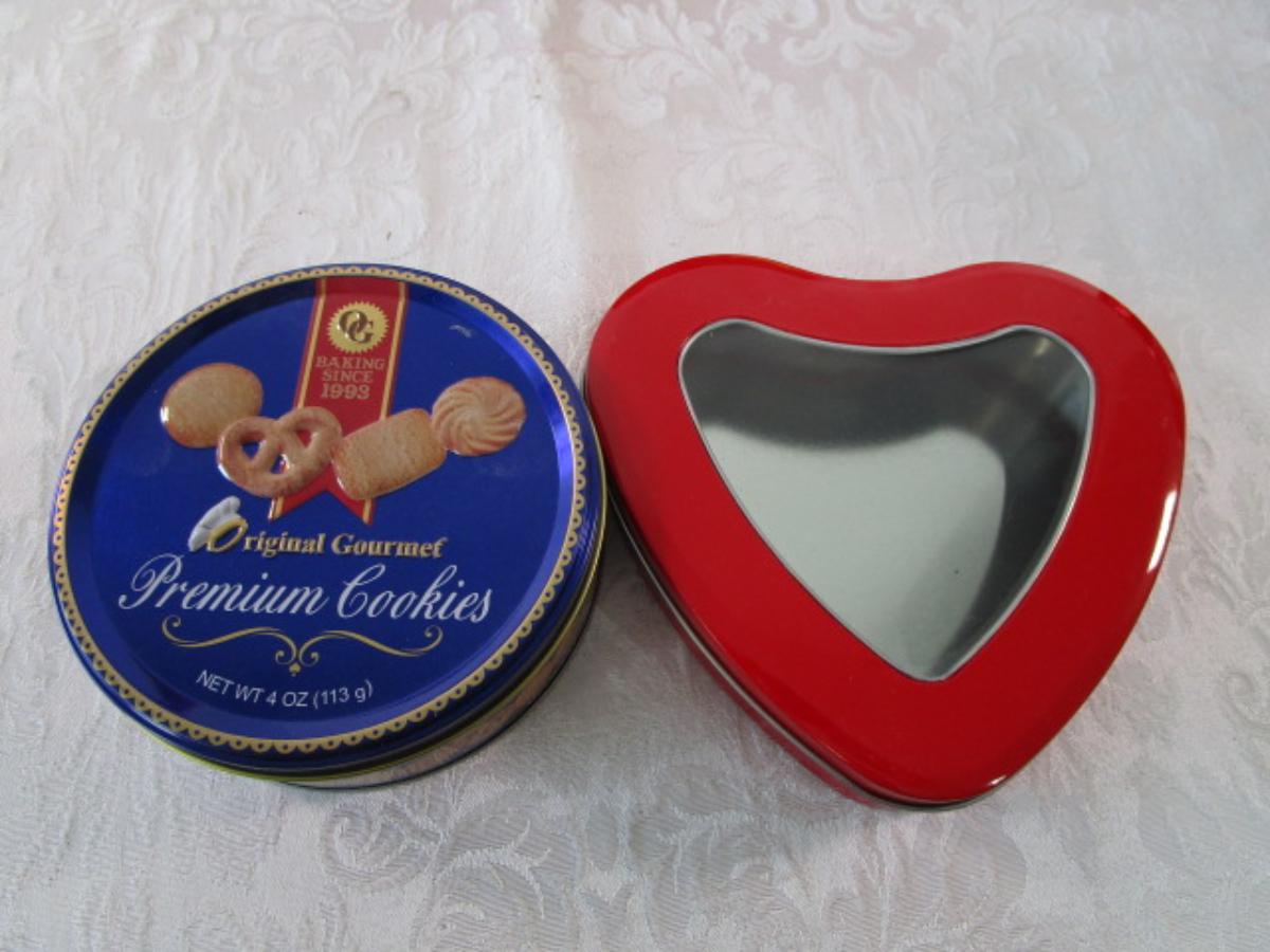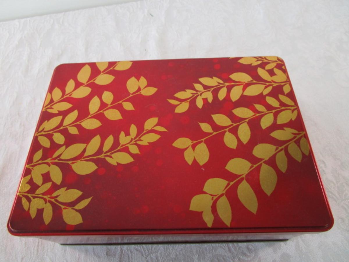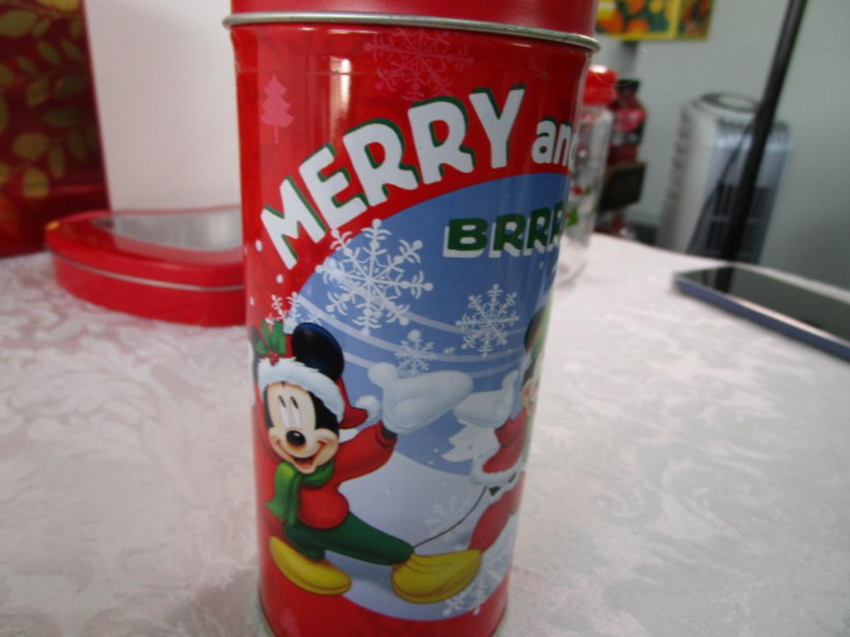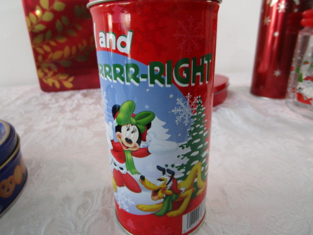9 Various metal tins, 1 glass decorated jar, all with lids