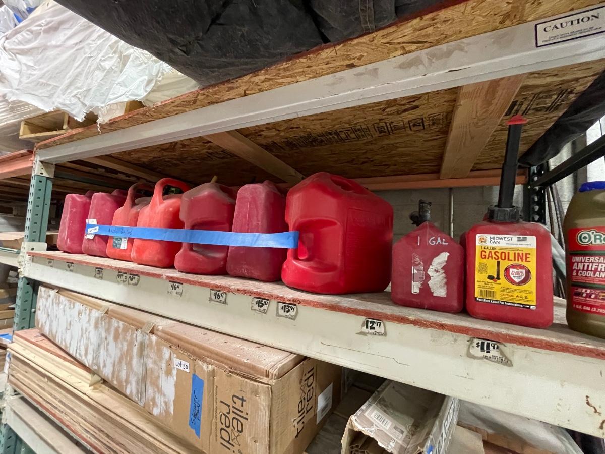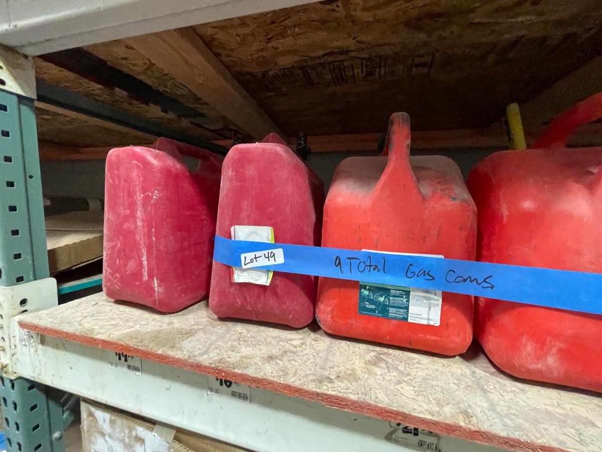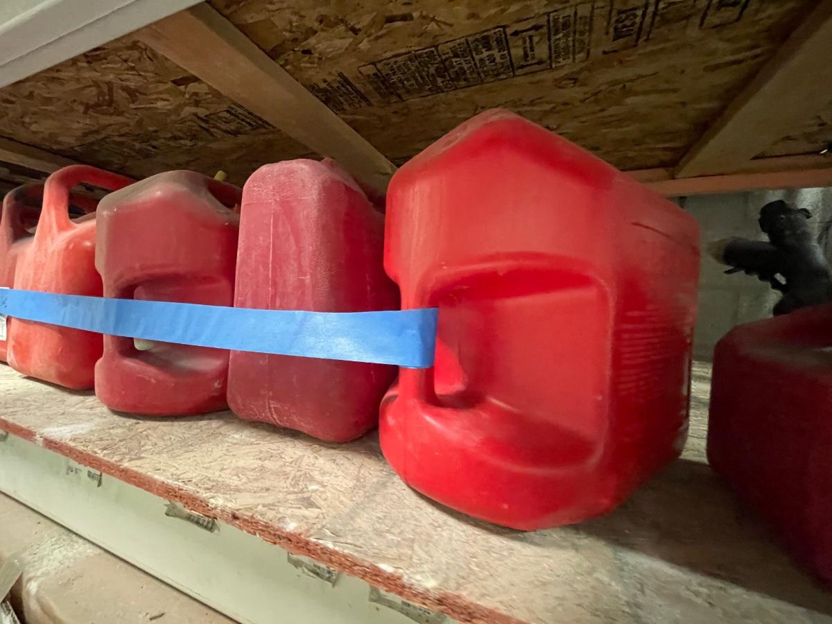 GAS CANS - 9 mostly larger various sized red plastic ones - All for 1 money