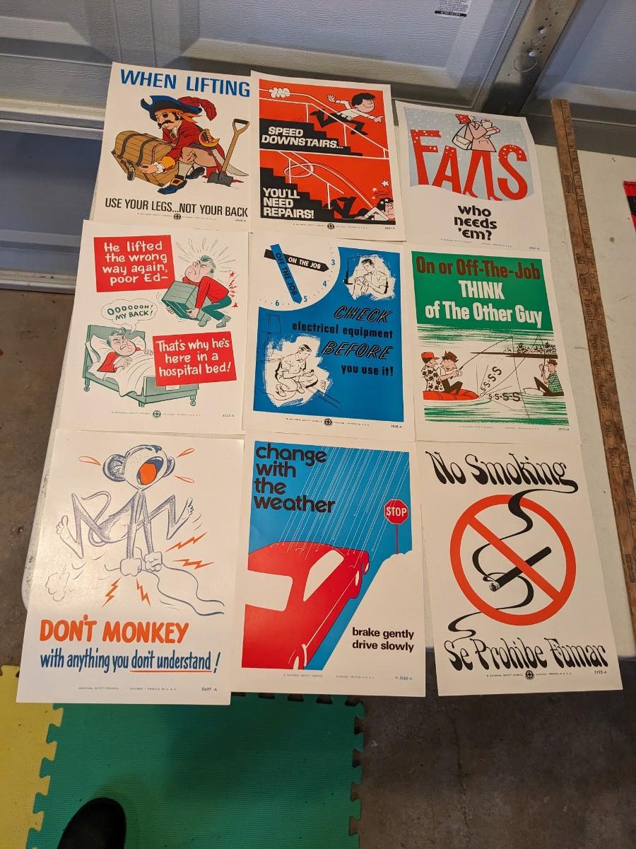 9 Vintage 1950s Green Cross Safety & Prevention Factory Workplace Posters (pirate)