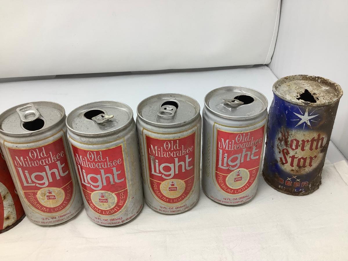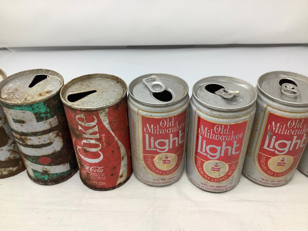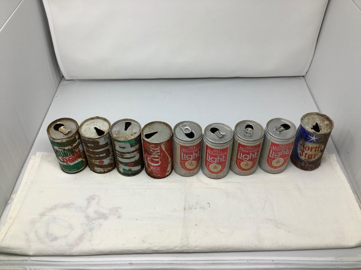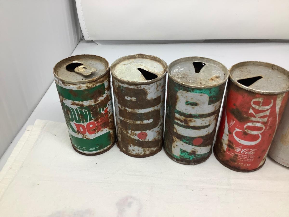 You get 5 vintage beer cans, and 4 vintage pop cans.