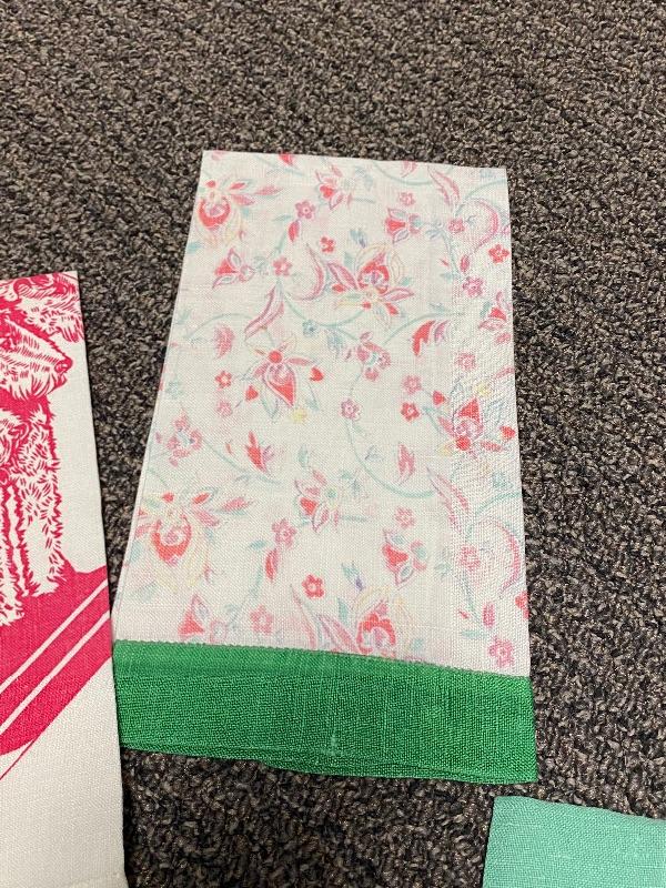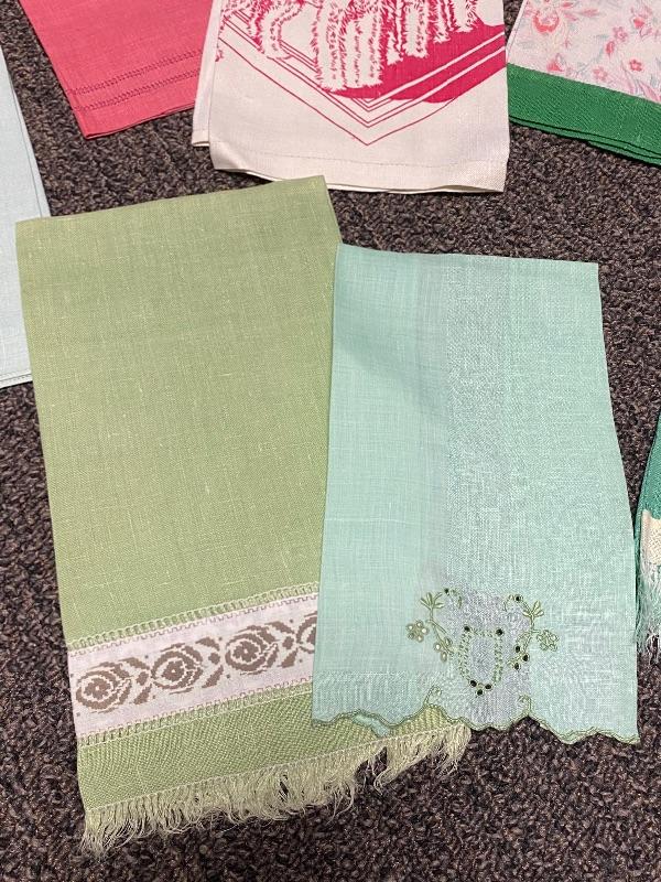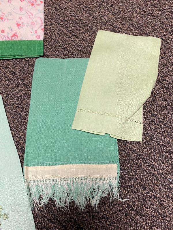 9 Vintage Pinks and Greens Linen Handkerchiefs Napkins