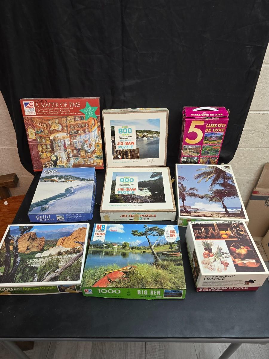 9 vintage puzzles - Guild - Milton Bradley -Parker Brothers - Great American Puzzle factory and others!